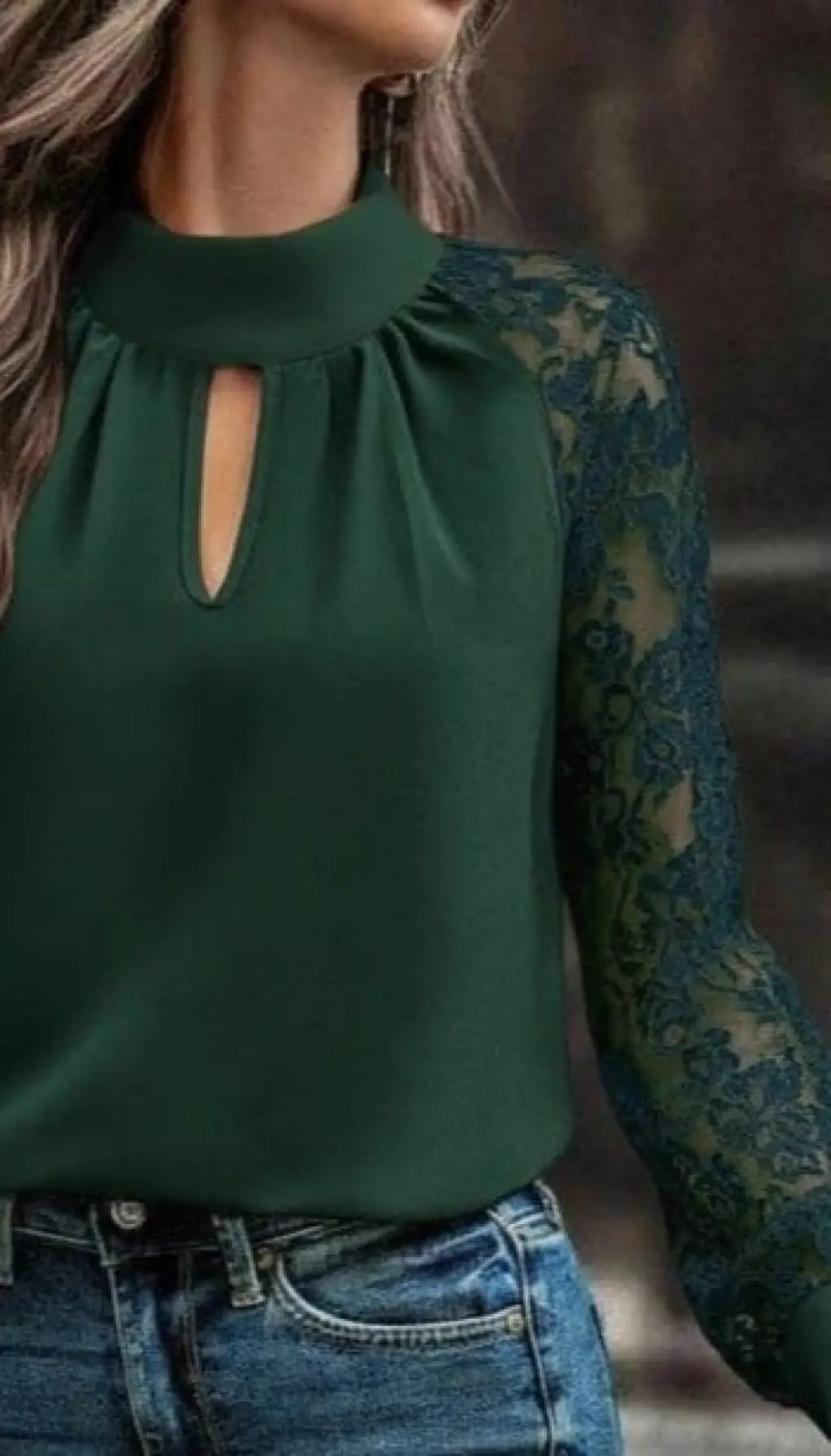 Kadın Uzun Kollu Göğüs Pencere Detay Yaka Boğazlı Kolları Tüllü Sandy Bluz