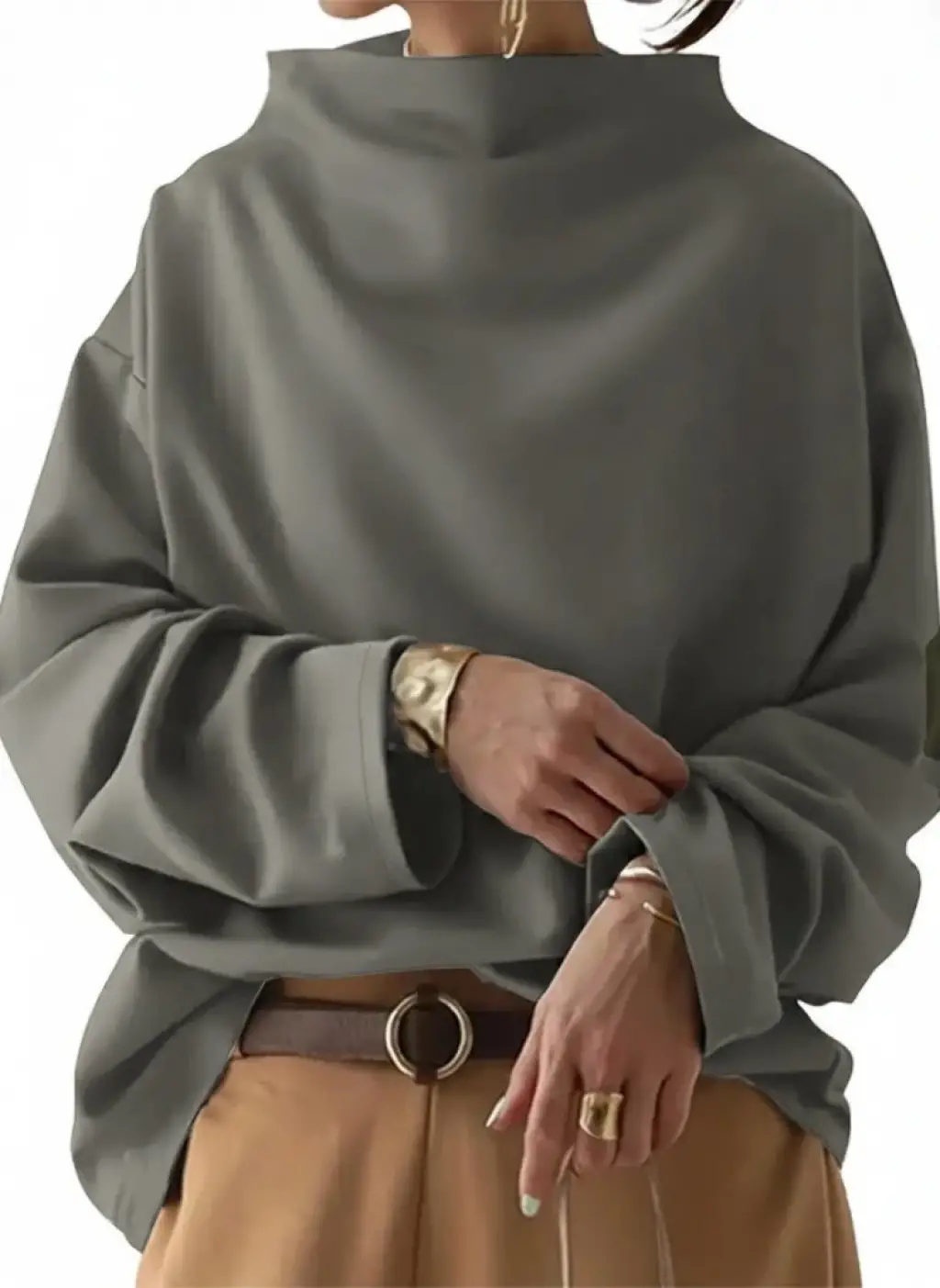 Kadın Uzun Kollu Geniş Balıkçı Yaka Modal Bluz