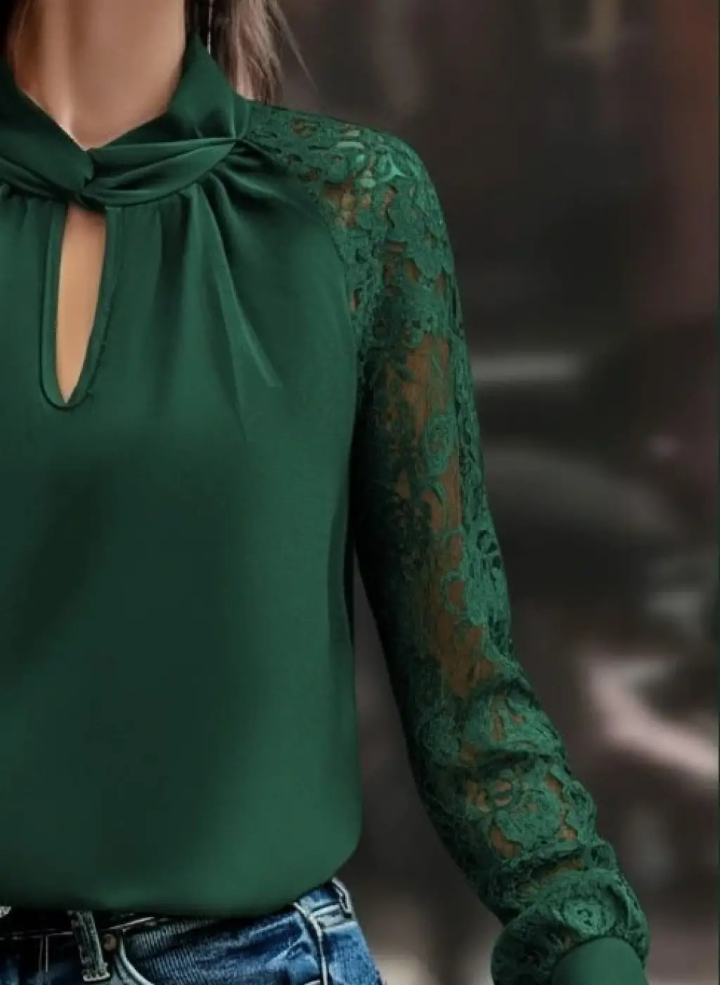 Kadın Uzun Kollu Tek Omuzu Açık Dantelli Viskon Iki Iplik Bluz