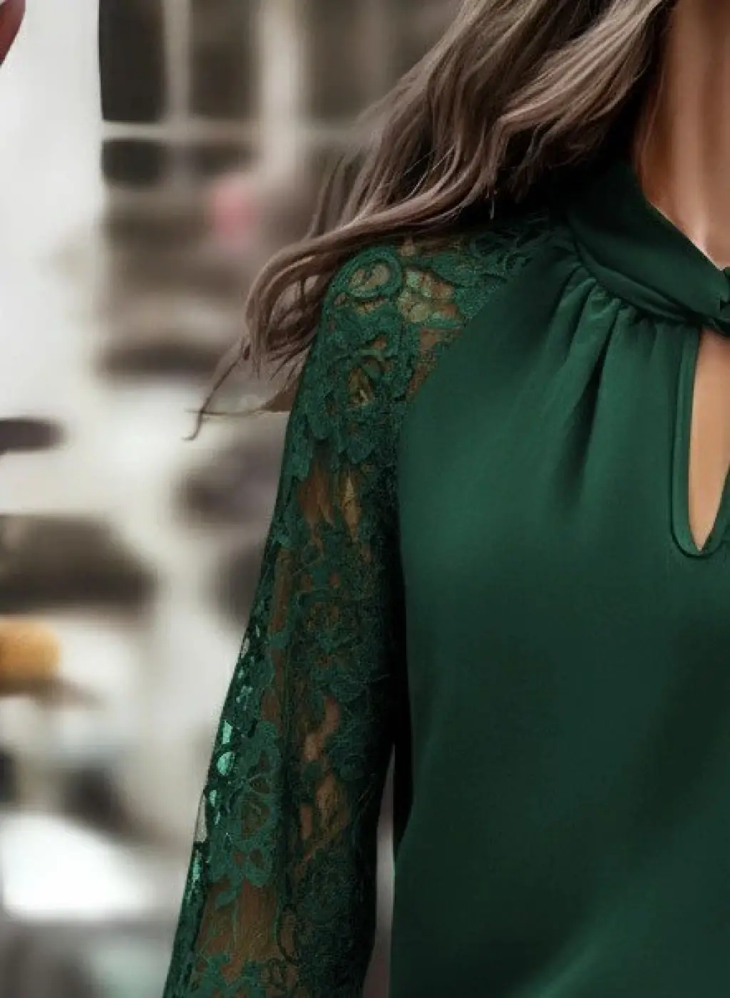 Kadın Uzun Kollu Yaka Düğme Detay Güpürlü Kol Krep Bluz