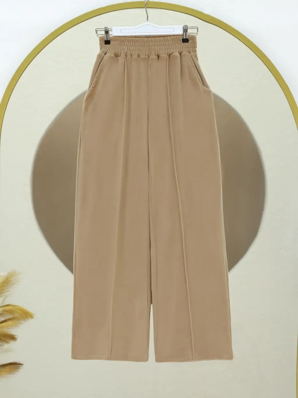 Çımalı Beli Lastikli Kadife Pantolon -Vizon