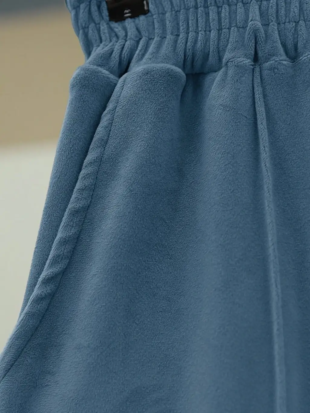 Çımalı Beli Lastikli Kadife Pantolon -Mavi