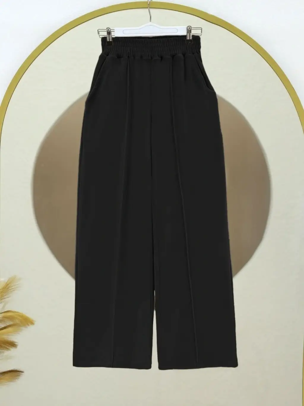 Çımalı Beli Lastikli Kadife Pantolon -Siyah