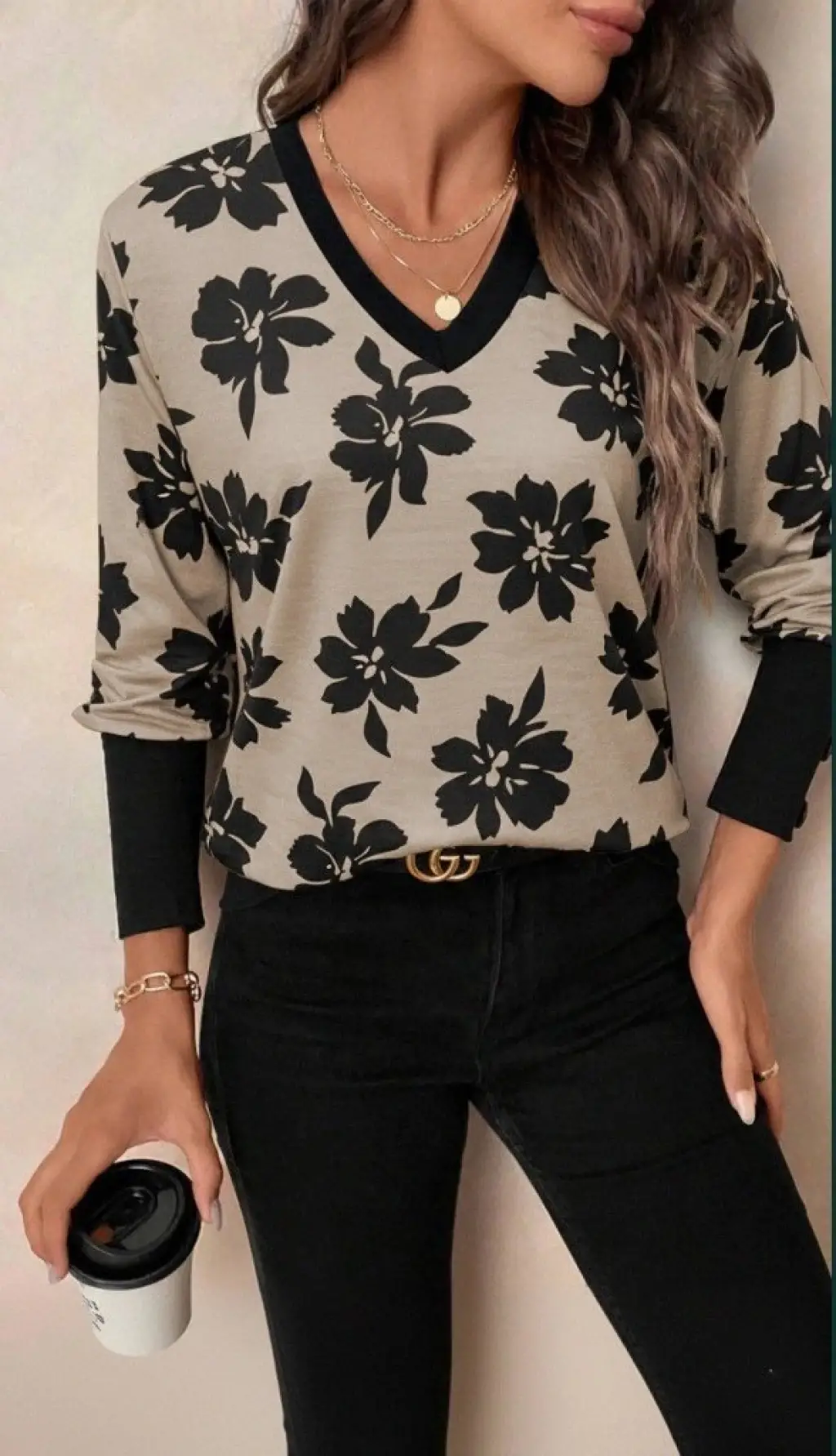 Kadın Uzun Kollu V Yakalı Desenli Süprem Bluz