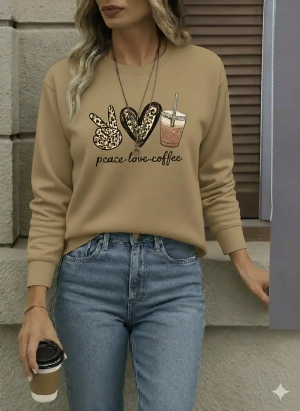 Kadın Uzun Kollu Bisiklet Yaka Kalp Desenli Viskon Iki Iplik Bluz