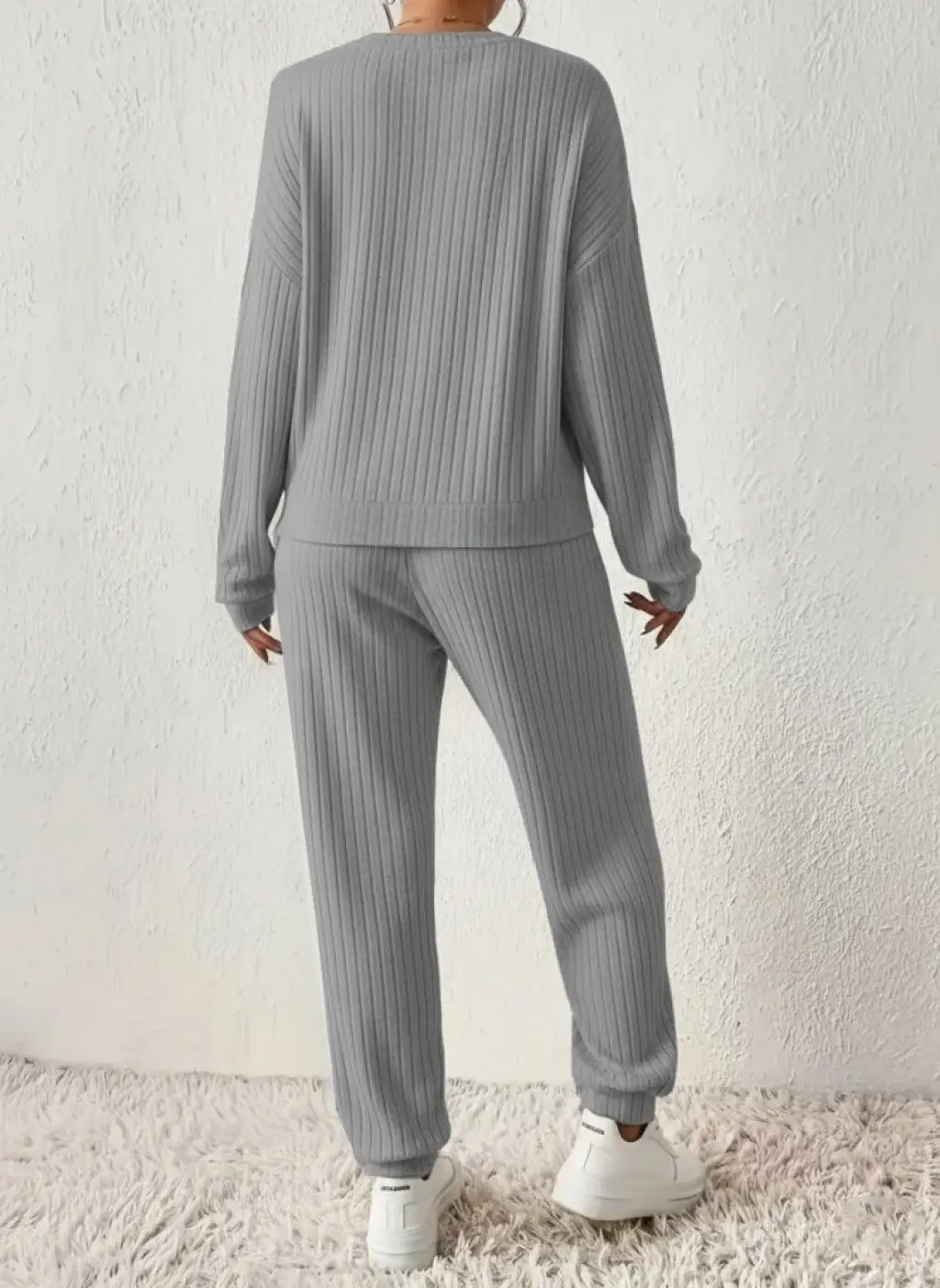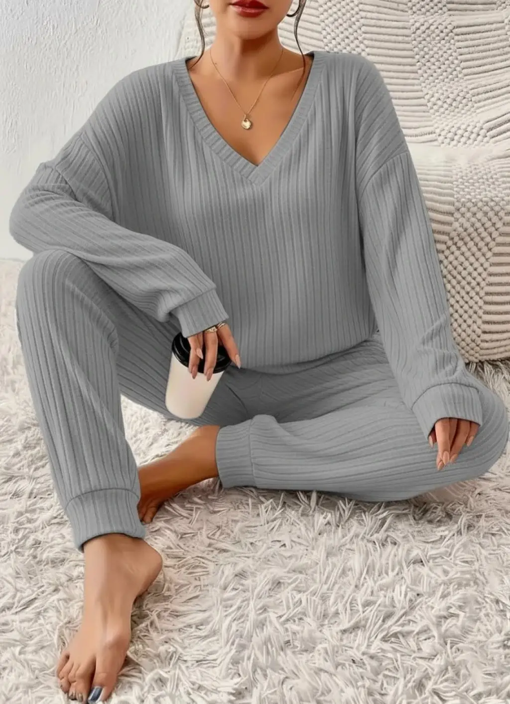 Kadın Uzun Kollu Yanları Nervurlu Viskon Iki Iplik Ve Pantolon Ikili Takım
