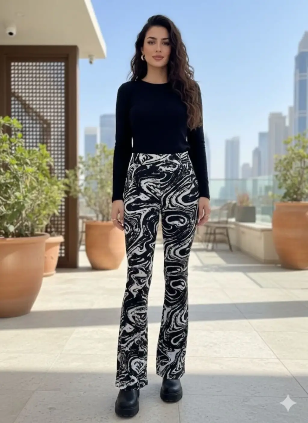 Kadın Yüksek Bel Bağcıklı Desenli Iki Iplik Pantolon