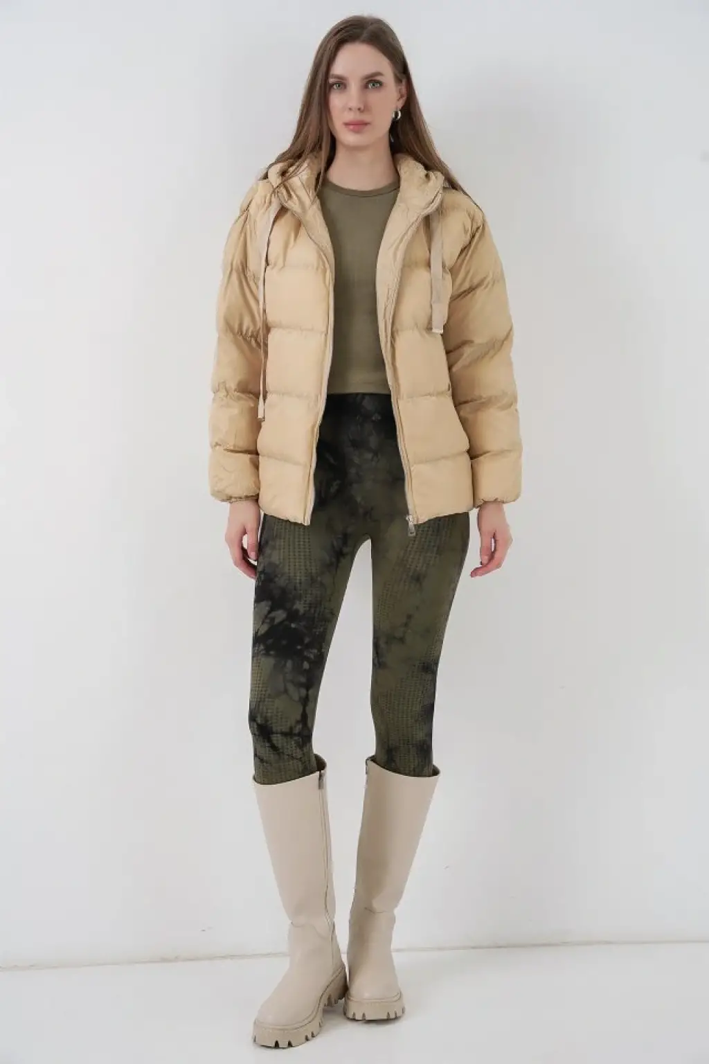 5117 Kapşonlu Şişme Mont - Vizon