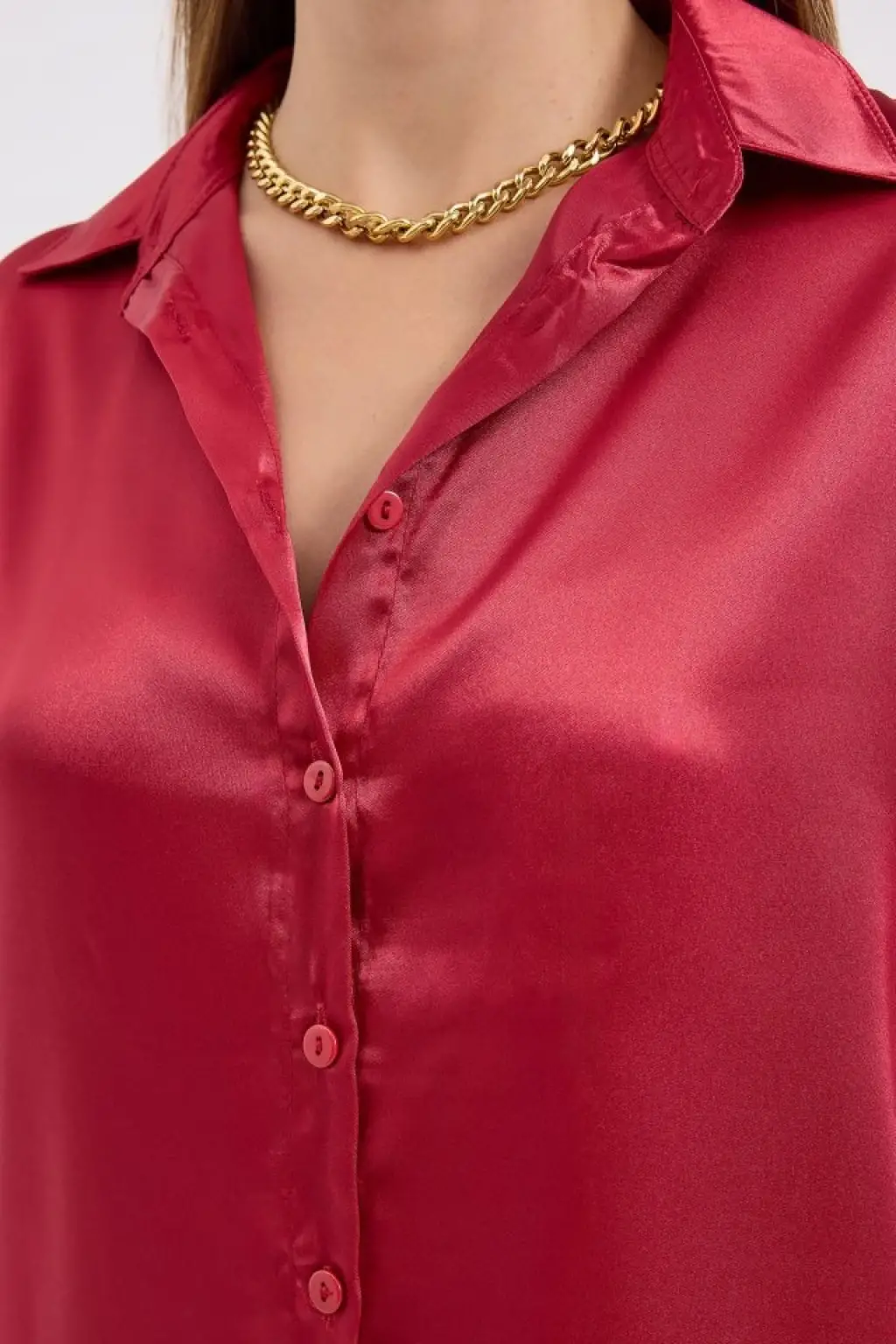 3964 Hafif Dökümlü Saten Gömlek - A.Bordo