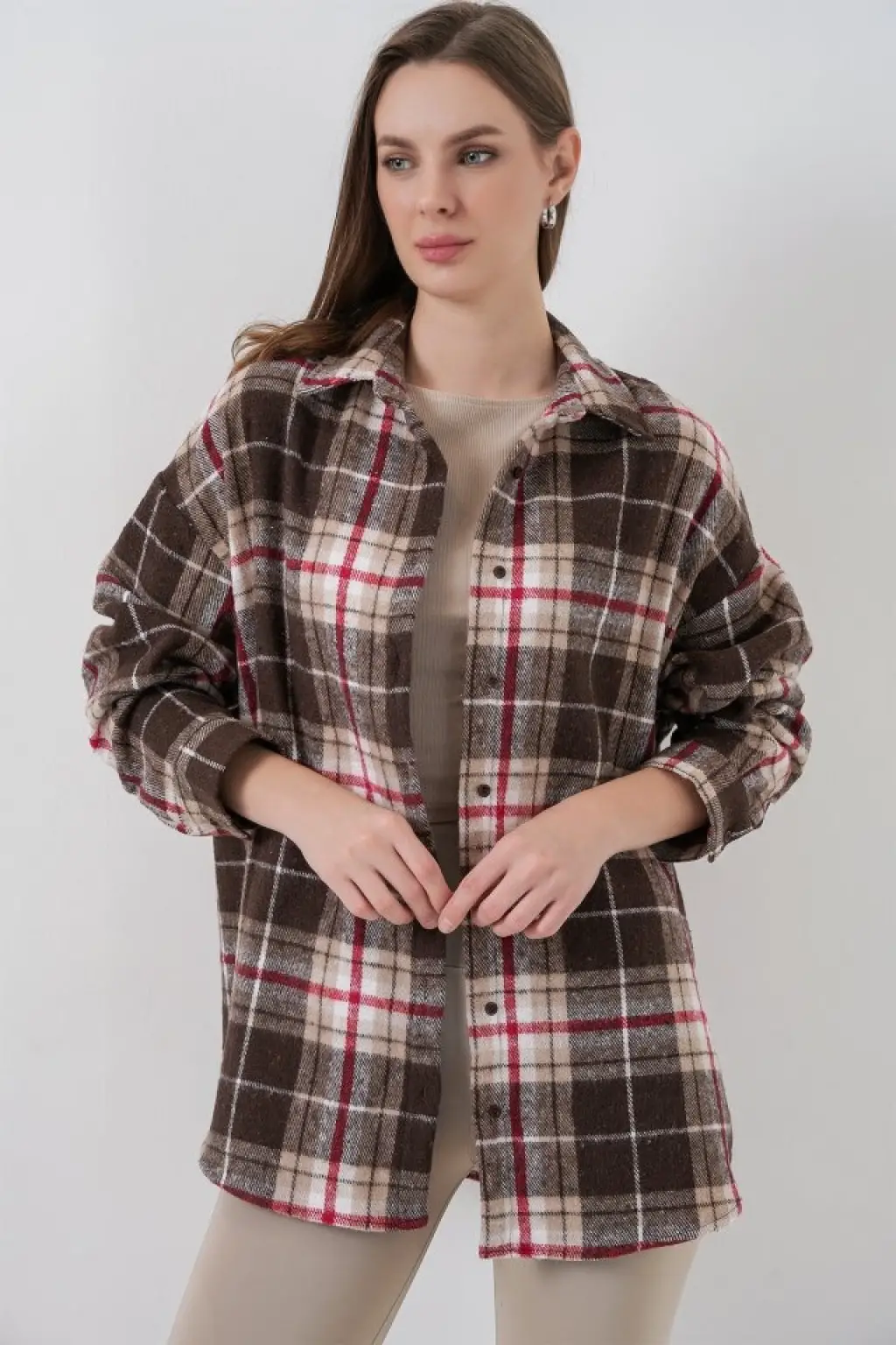 Ekose Desen Oversize Oduncu Gömlek 3854 Vizon