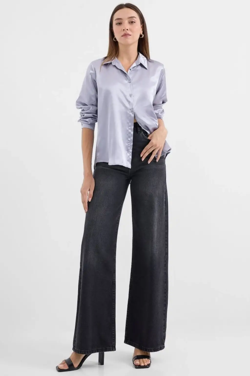3964 Hafif Dökümlü Saten Gömlek - Lila