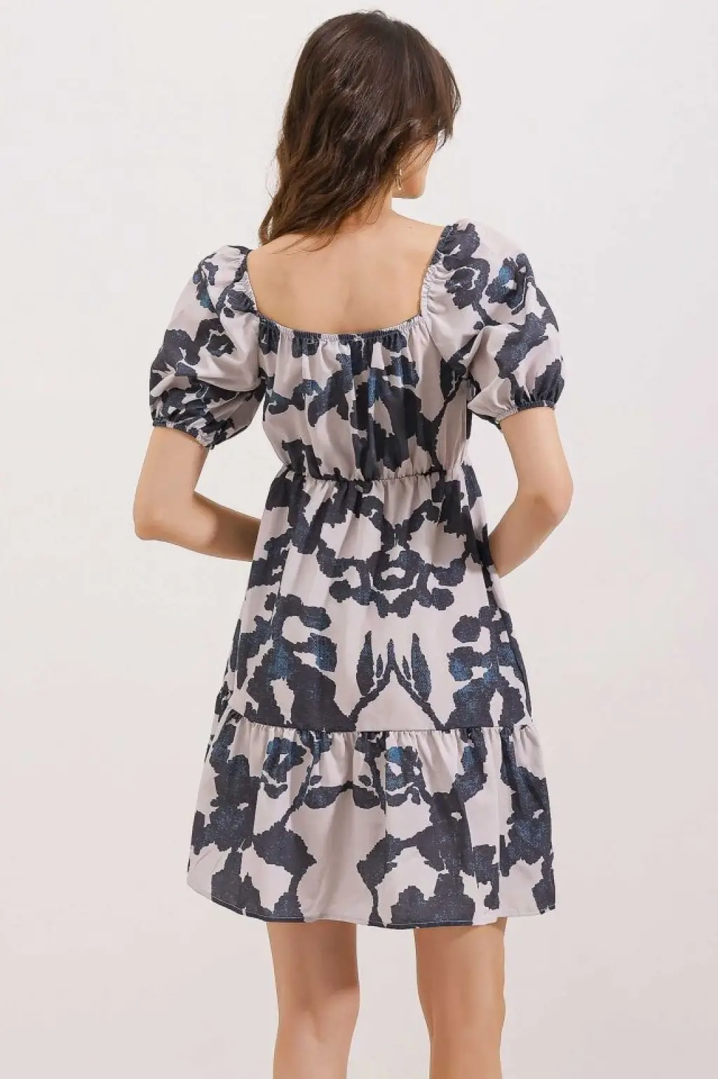 Kadın Kısa Kollu Madonna Yaka önü Kısa Arkası Uzun Ithal Krep Elbise
