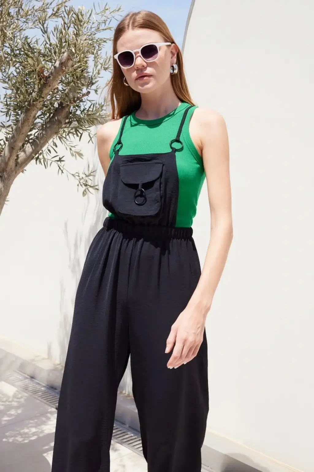 7023 Askılı Bahçıvan Tulum - Siyah