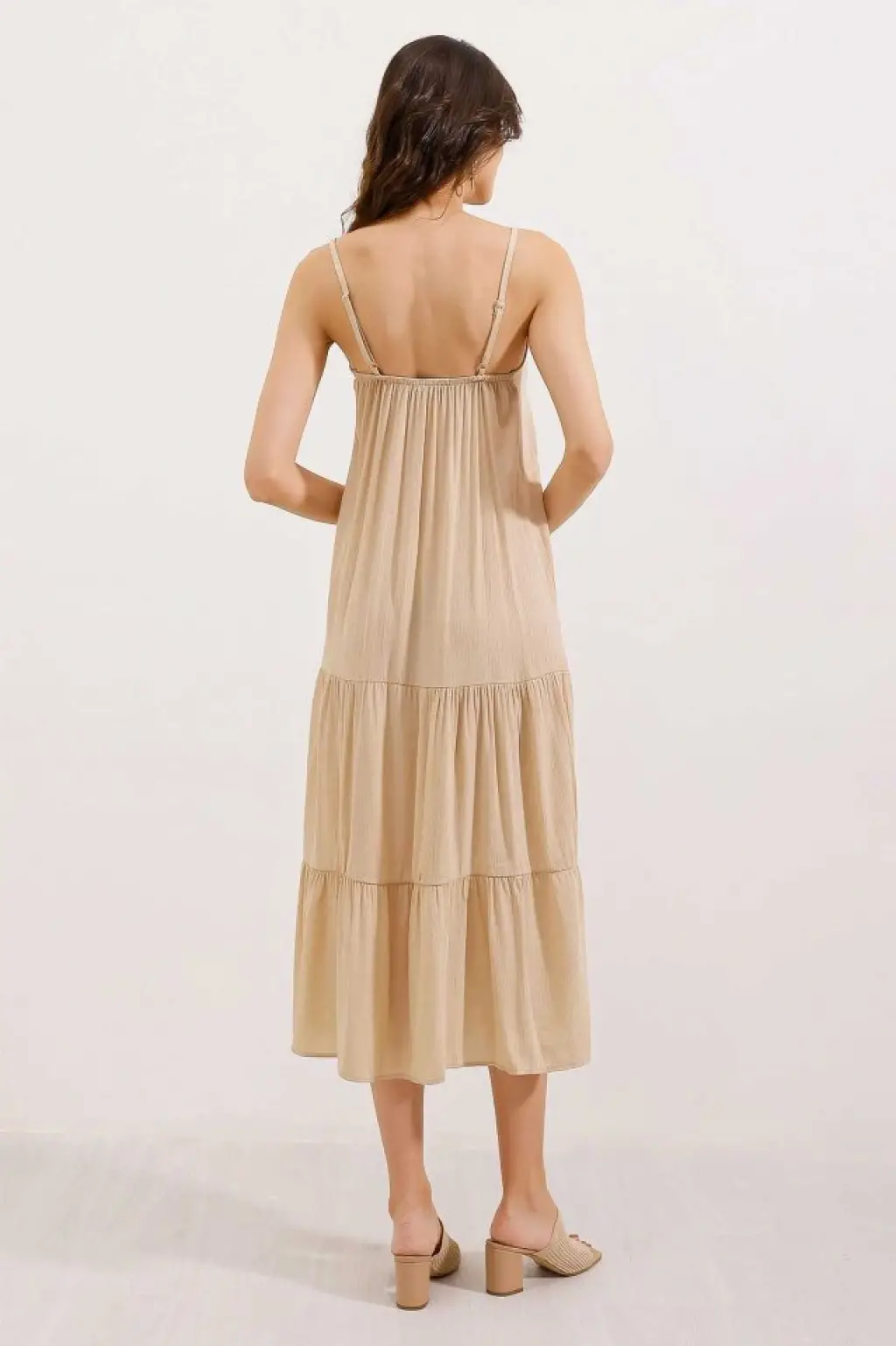 2403 Askılı Midi Elbise - Krem