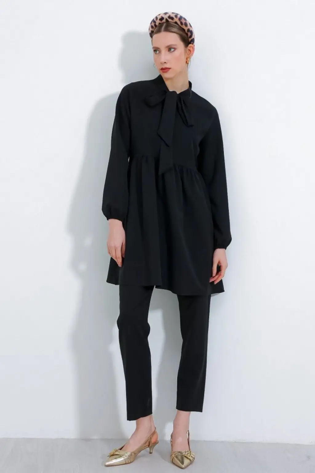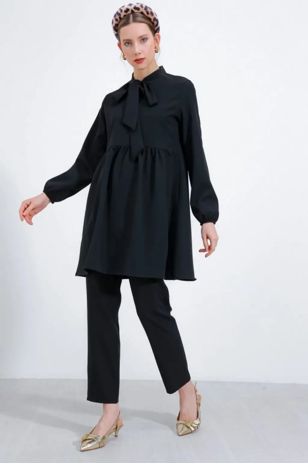Siyah Örme Pantolon Tunik Alt Üst Takım 6654