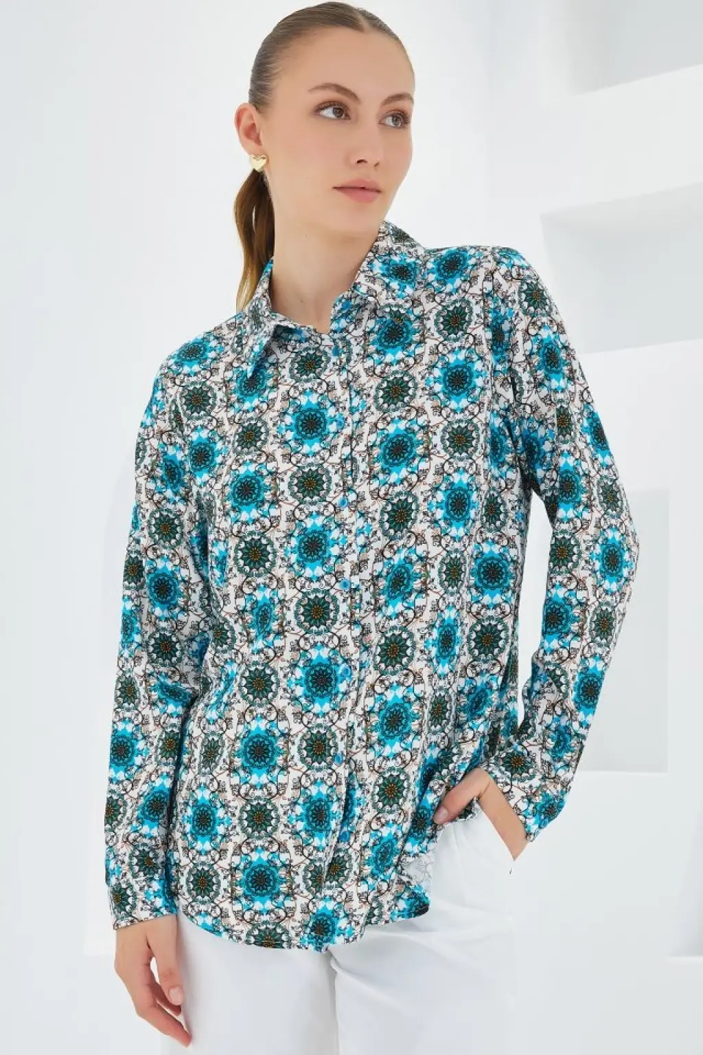 3721 Grafik Desenli Gömlek - B.Mavi