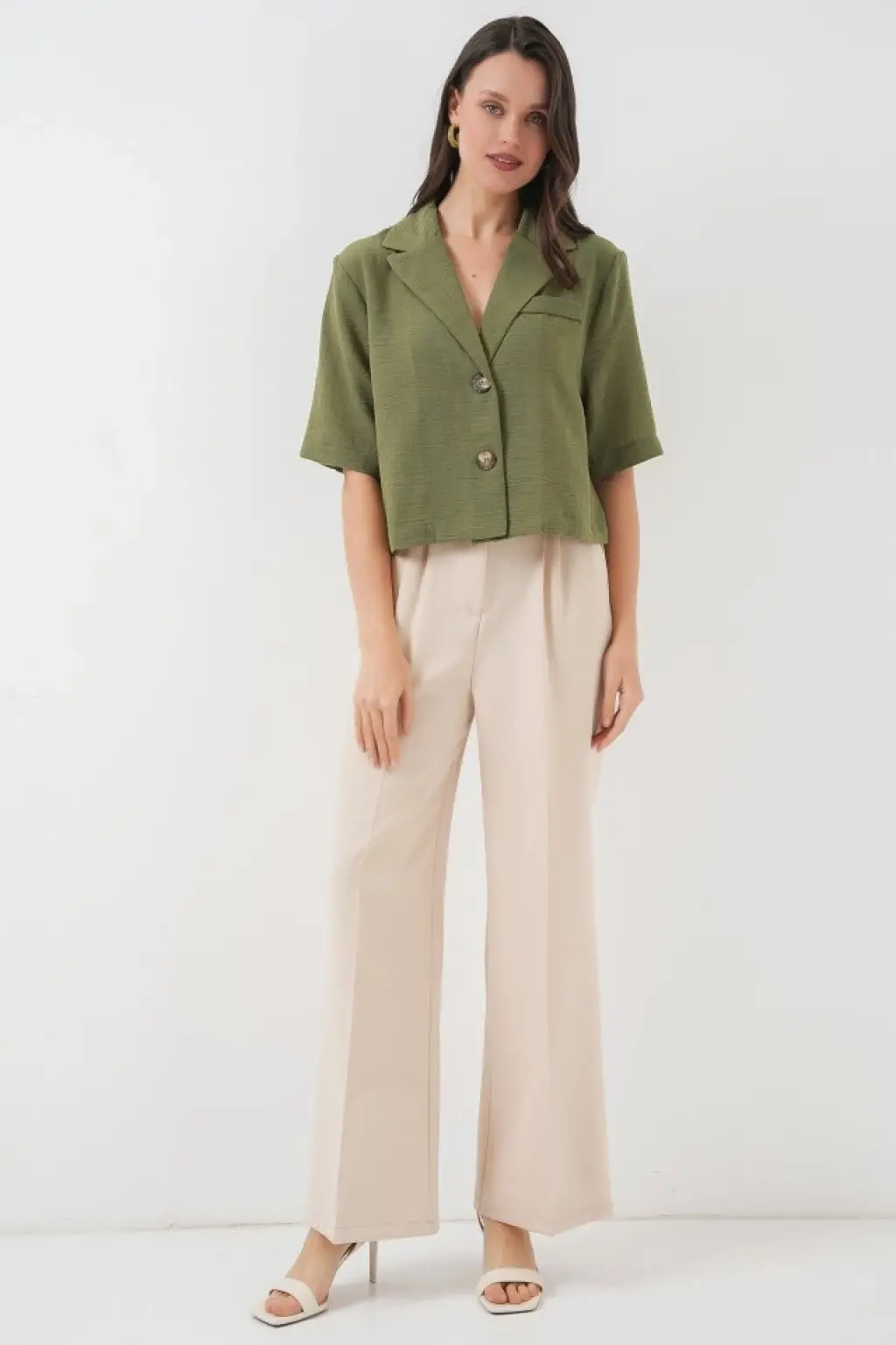 Crop Yakalı Gömlek Üç Çeyrek Sleeve Kol - Beyaz