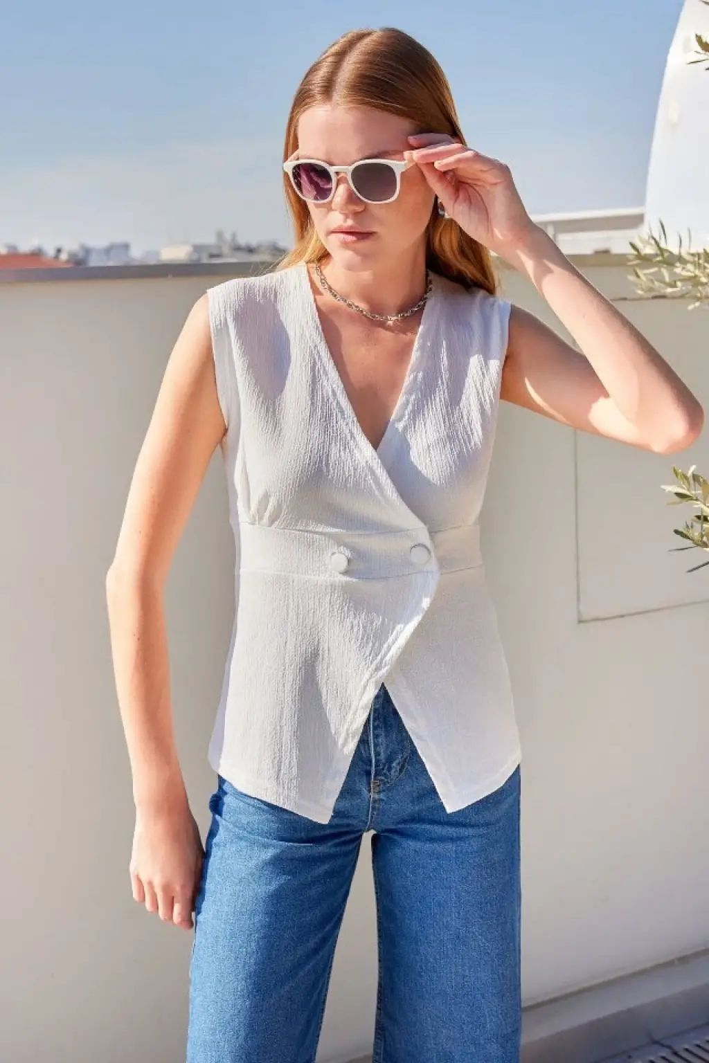 Bağlamalı Yelek - Beyaz