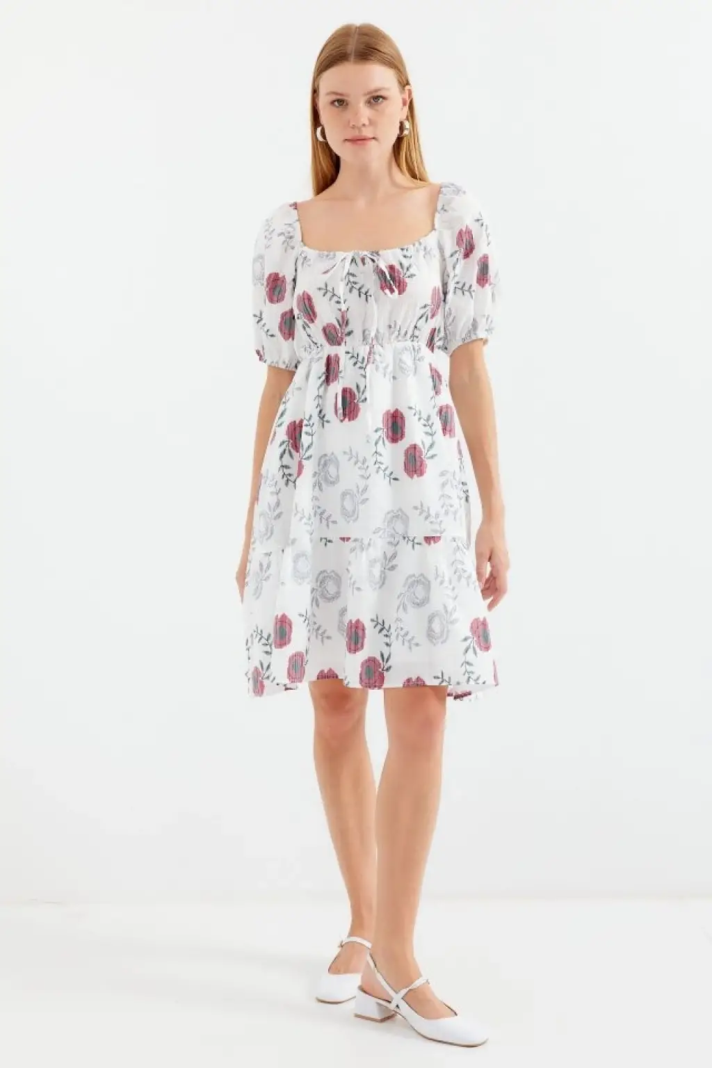 Kadın Kısa Kollu Madonna Yaka önü Kısa Arkası Uzun Ithal Krep Elbise