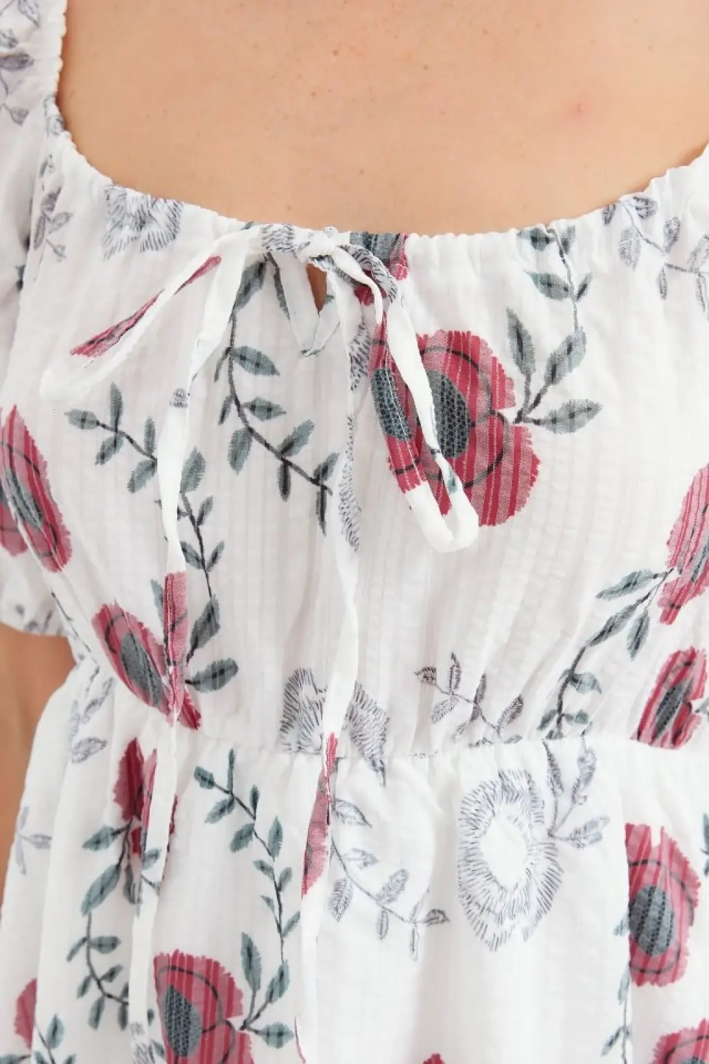 Kadın Uzun Kollu Kruvaze Yakalı çiçek Desenli Mini Süprem Elbise