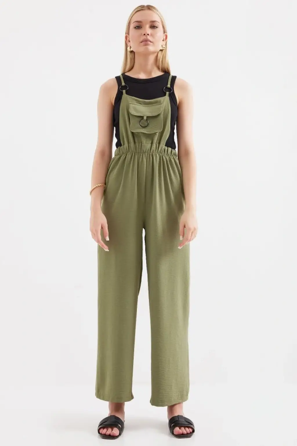 Kadın Askılı Yuvarlak Asimetrik Kesim Detaylı Viskon Elbise
