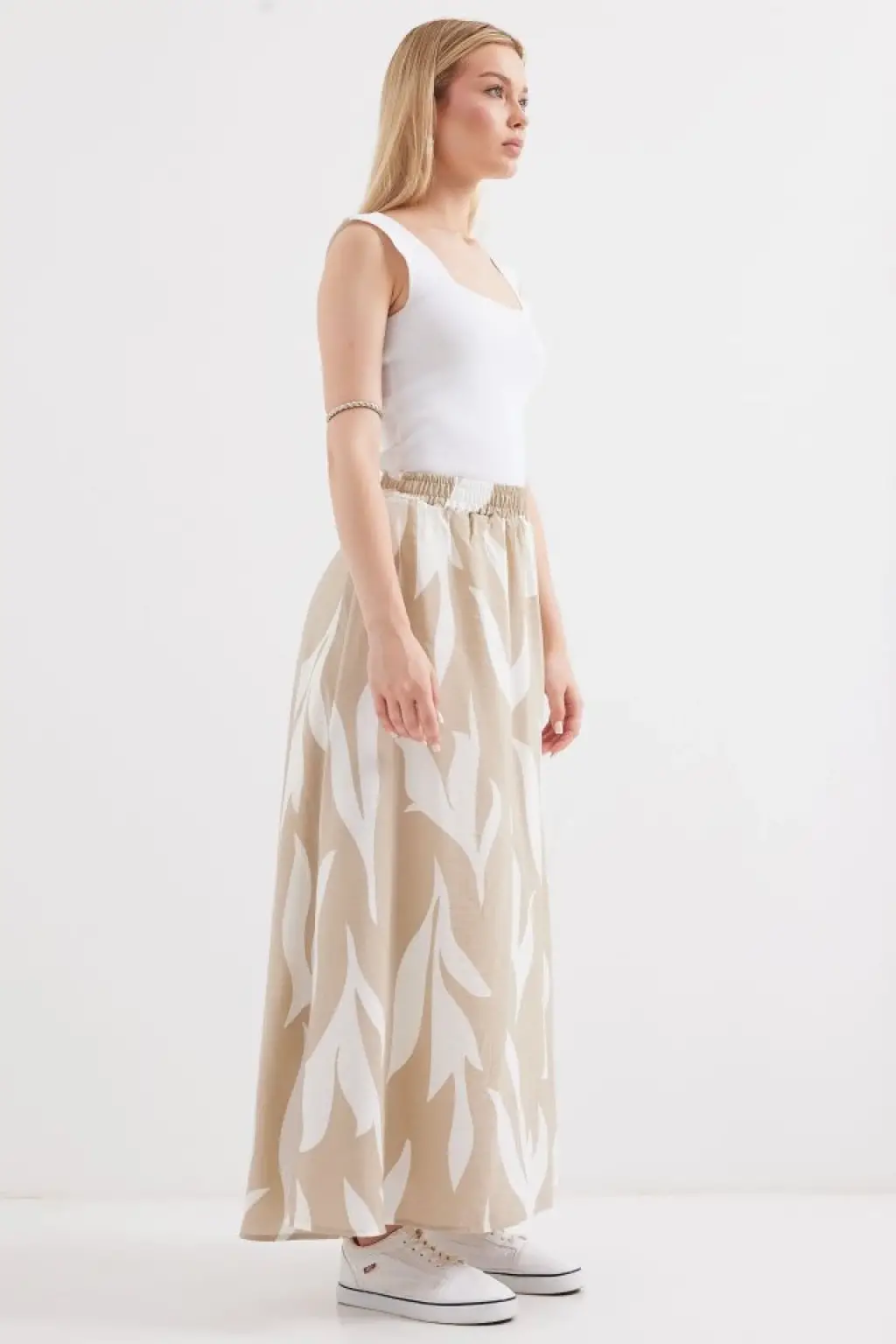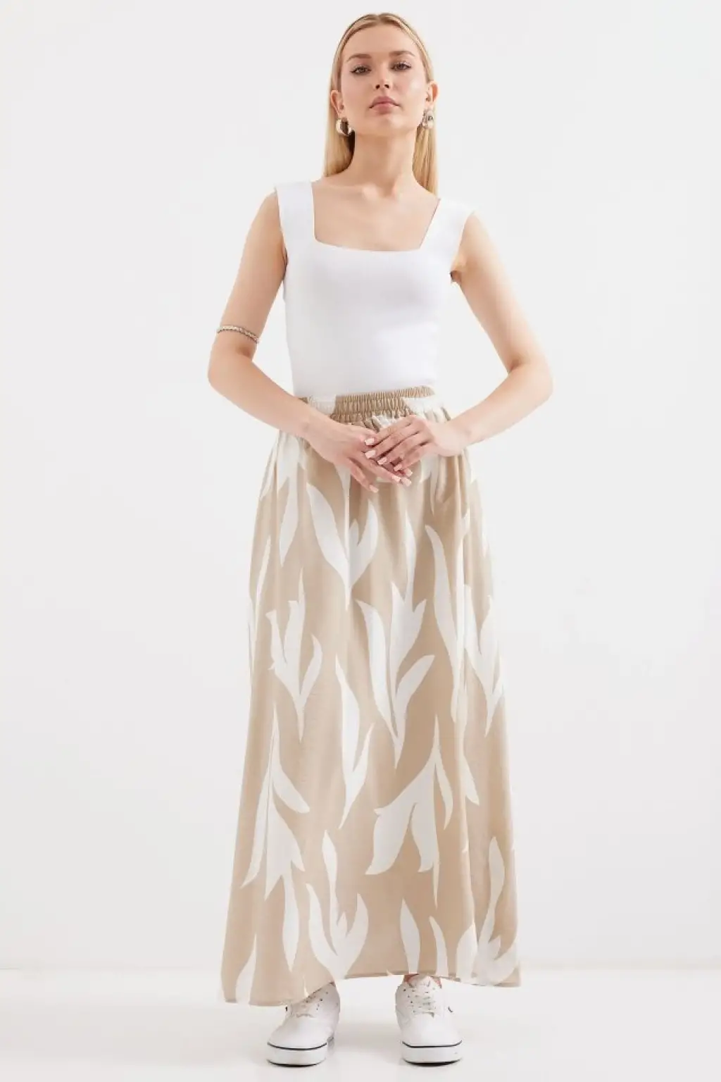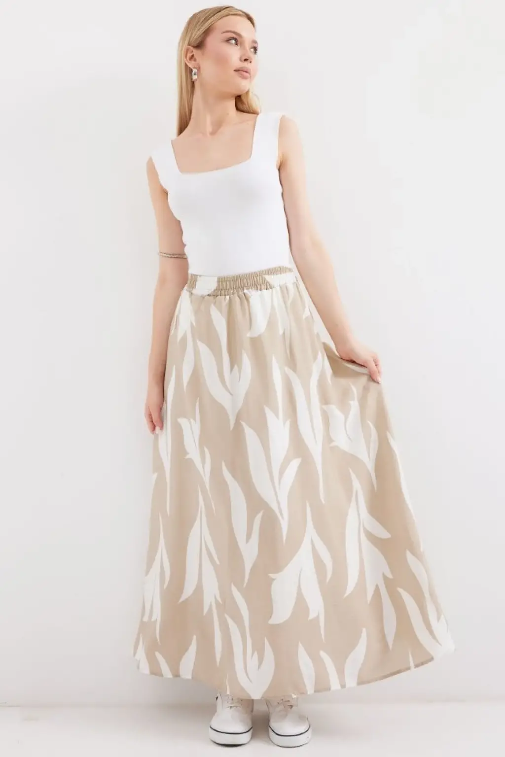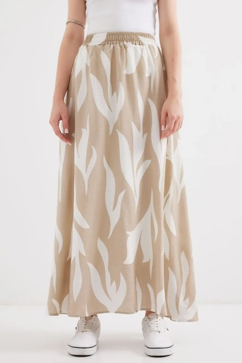 8028 Desenli Uzun Etek - Bej