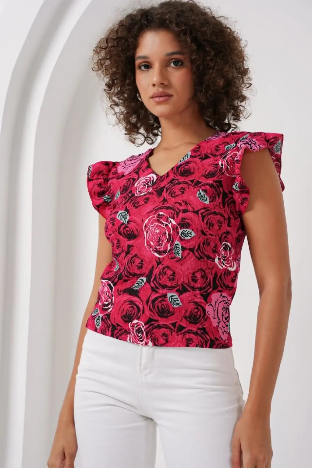Kadın Yakası Fırfır Detay Kolları Tül Bluz