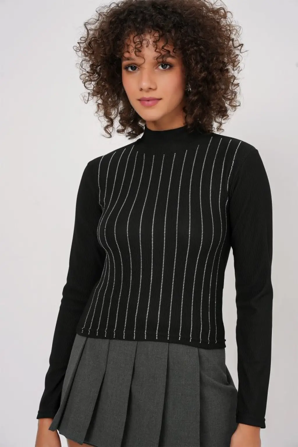 Vivaldi Kadın Sİyah Uzun Kol Balıkçı Body Likralı 353