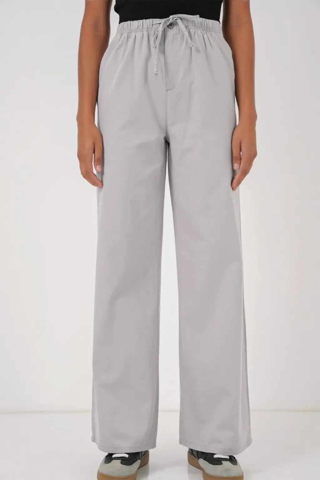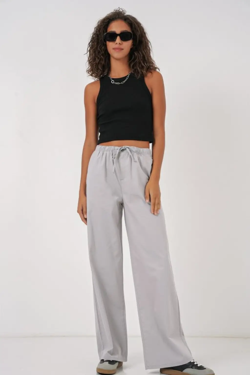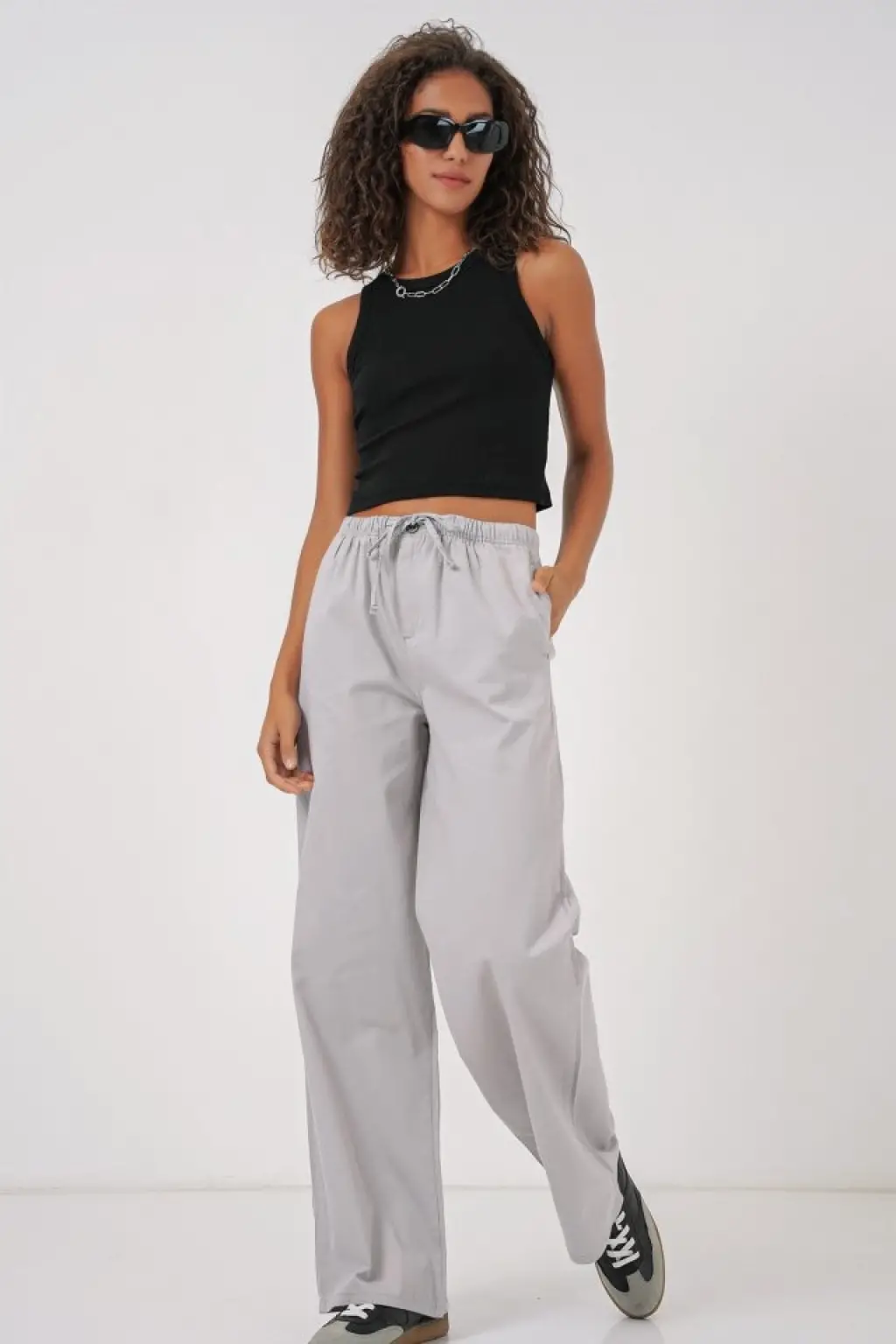 6690 Bol Paça Yüksek Bel Pantolon - Gri