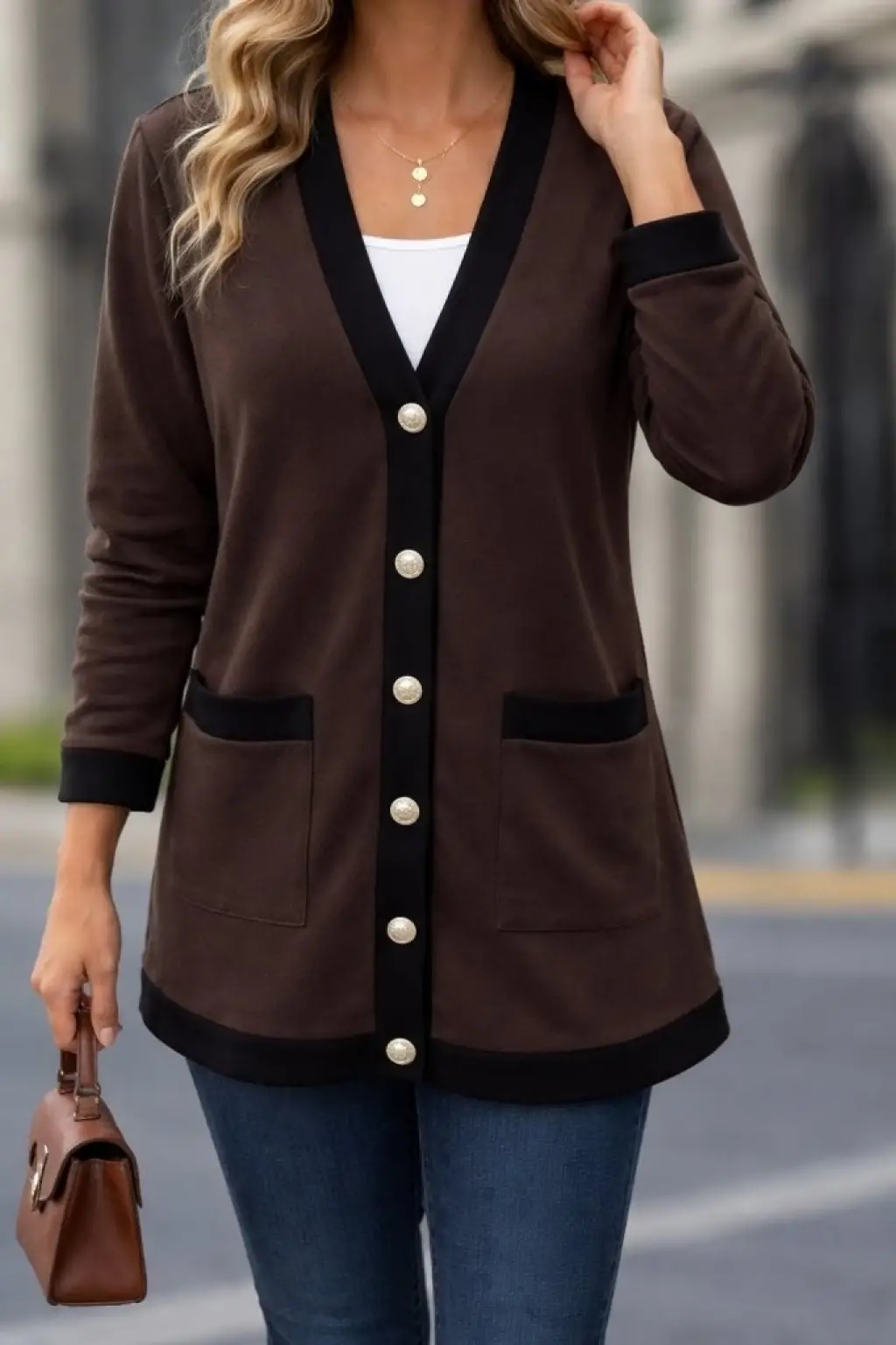 Kadın Uzun Kollu Cepli önden Düğmeli Uzun Modal Ceket Hırka