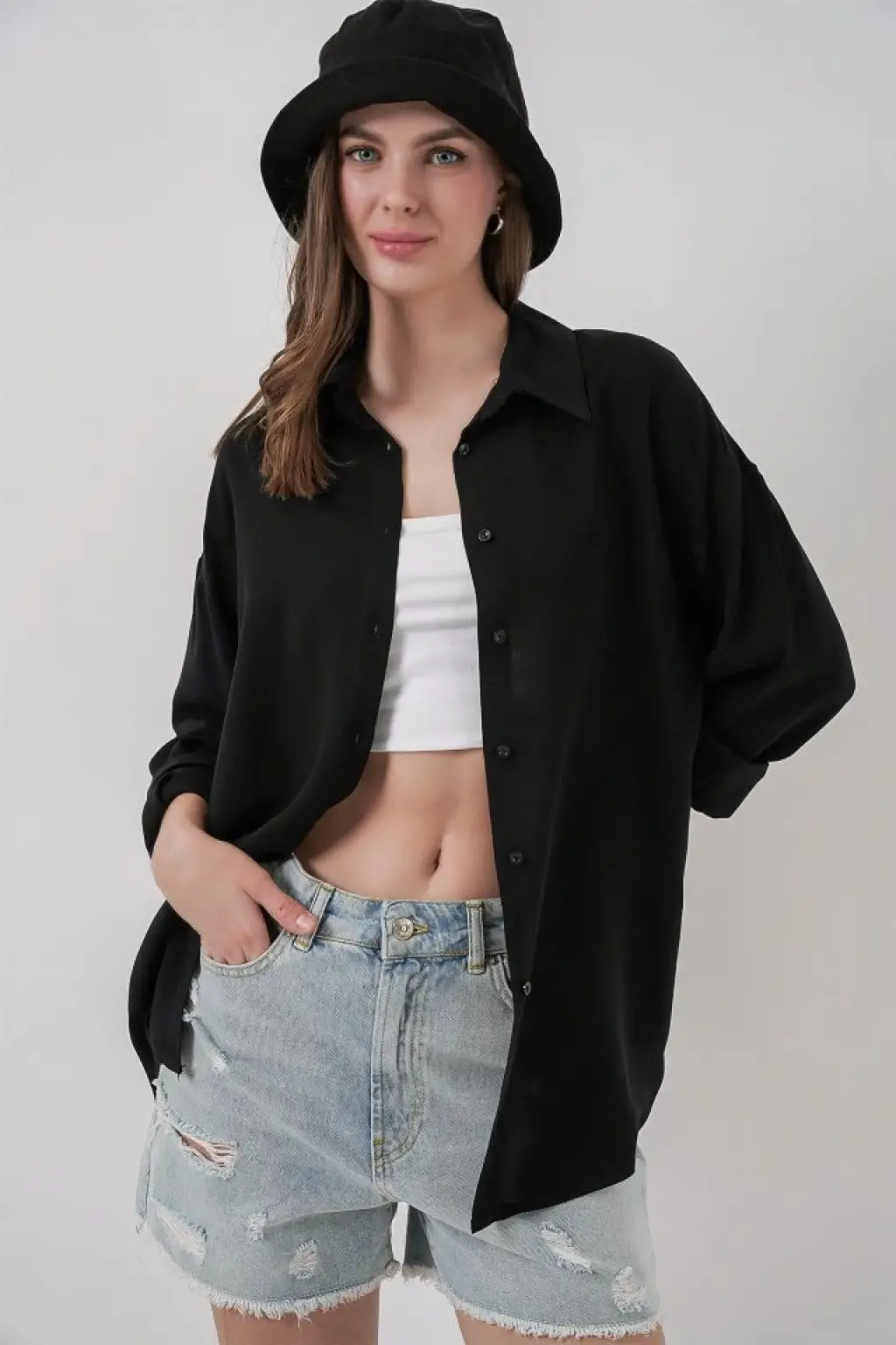 Oversize Viskon Gömlek 3785 - Siyah