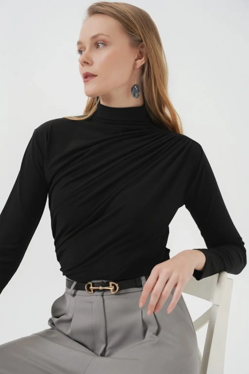 925 Büzgü Detaylı Sandy Bluz - Siyah