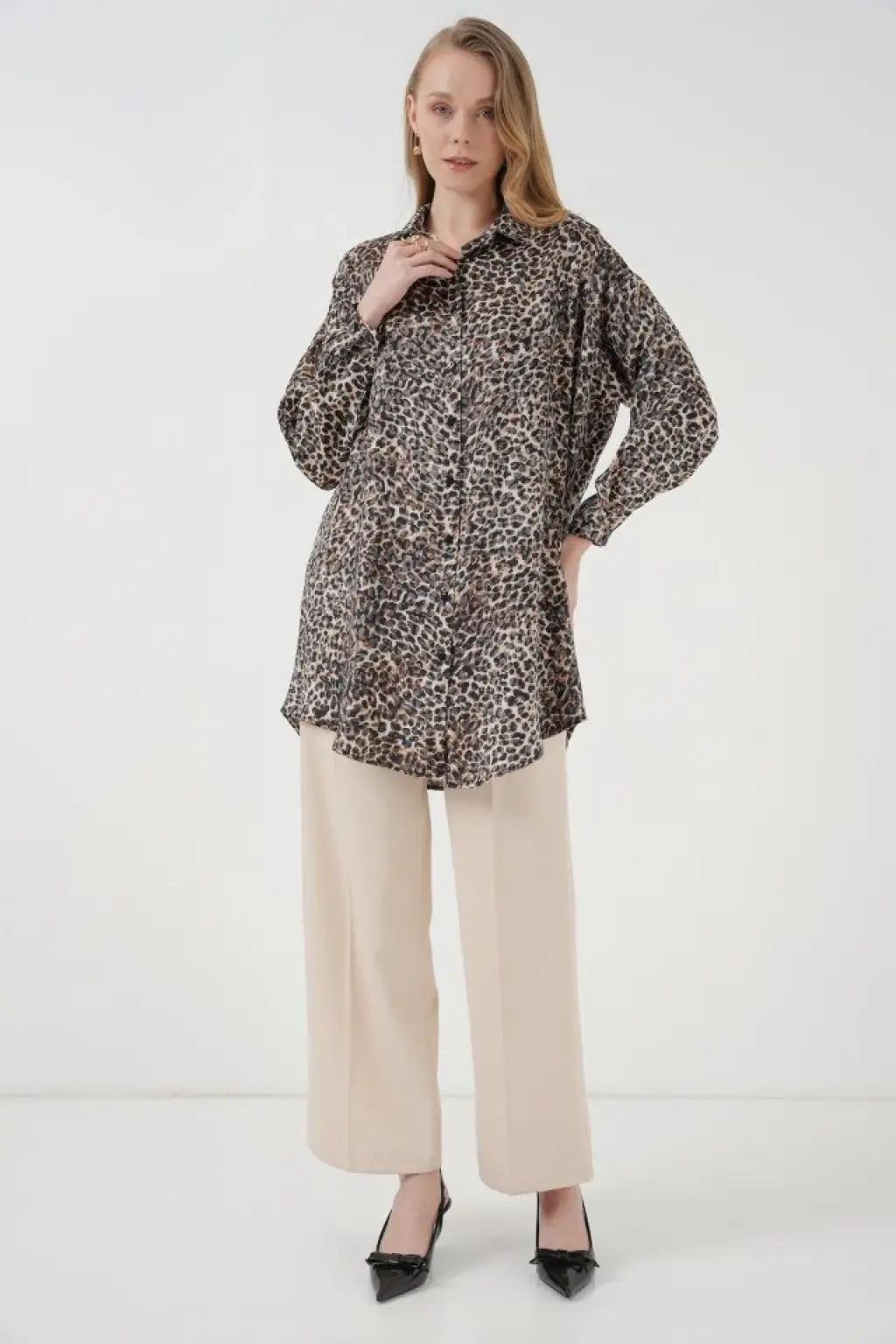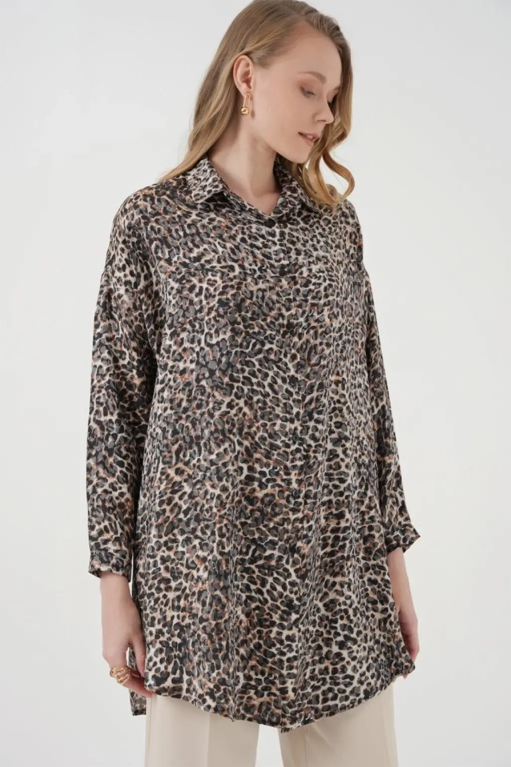 5944 Desenli Uzun Gömlek Tunik - C. Kahverengi