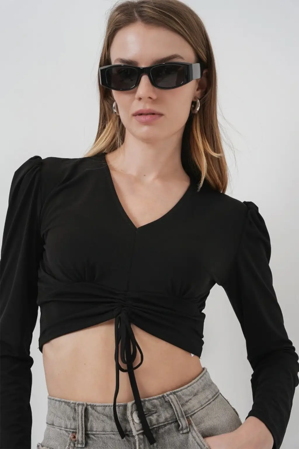 936 Sandy Crop Bluz - Siyah