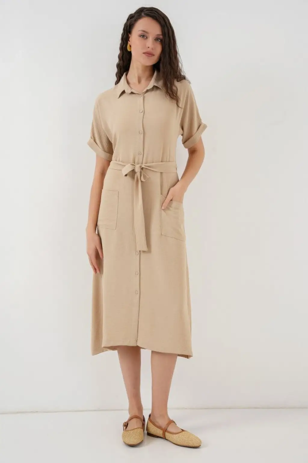 Kısa Kol Elbise 2214 - Bej