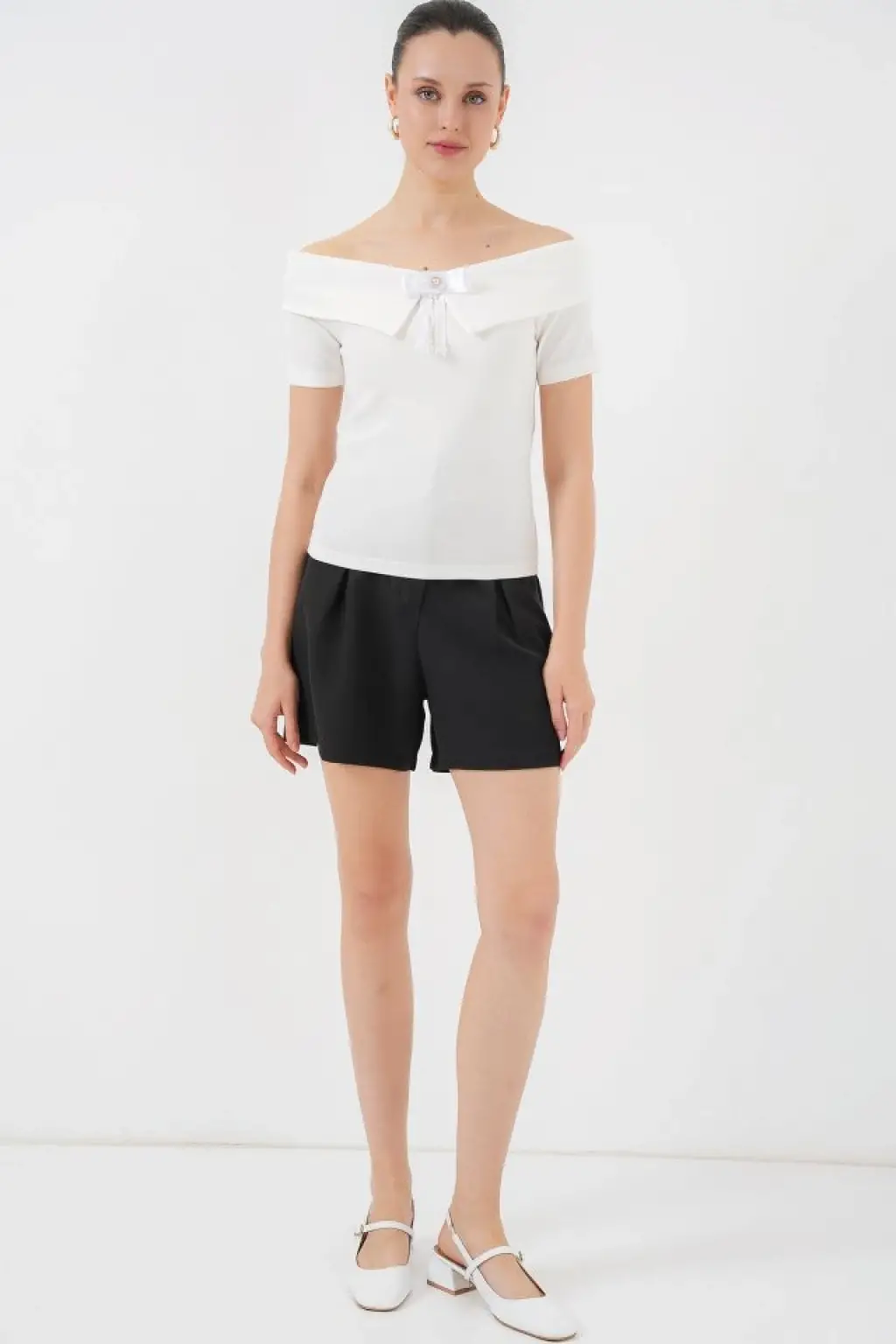 Kurdele Detaylı Örme Bluz 949 - Beyaz