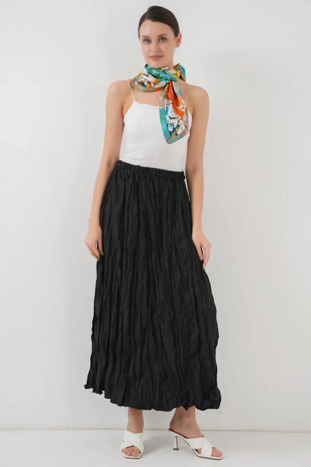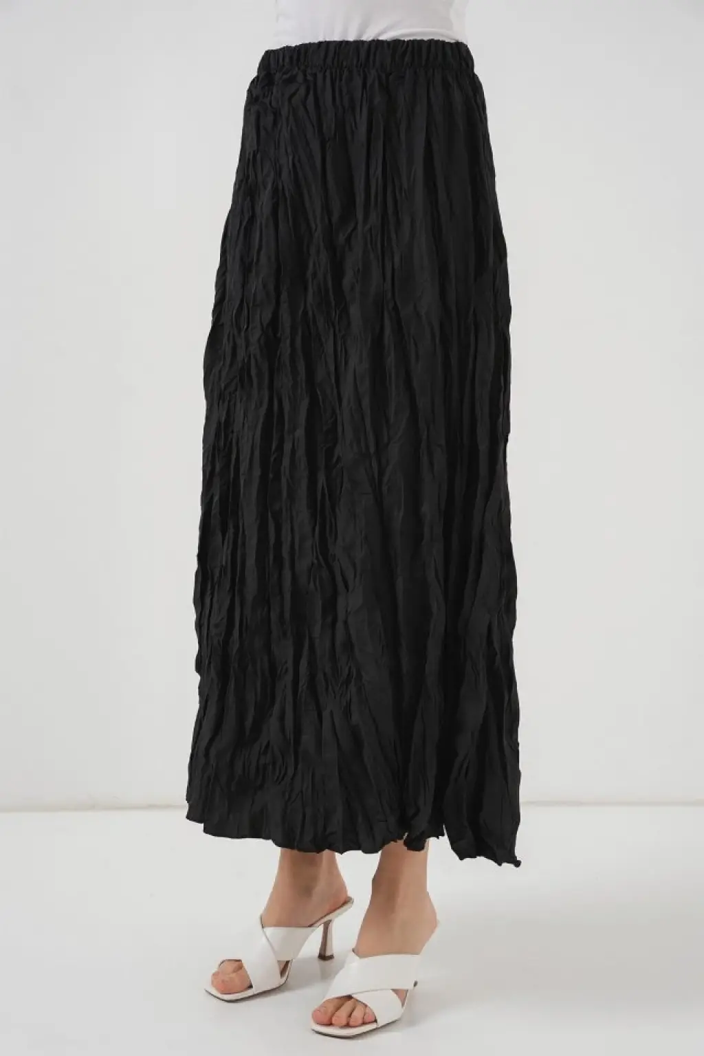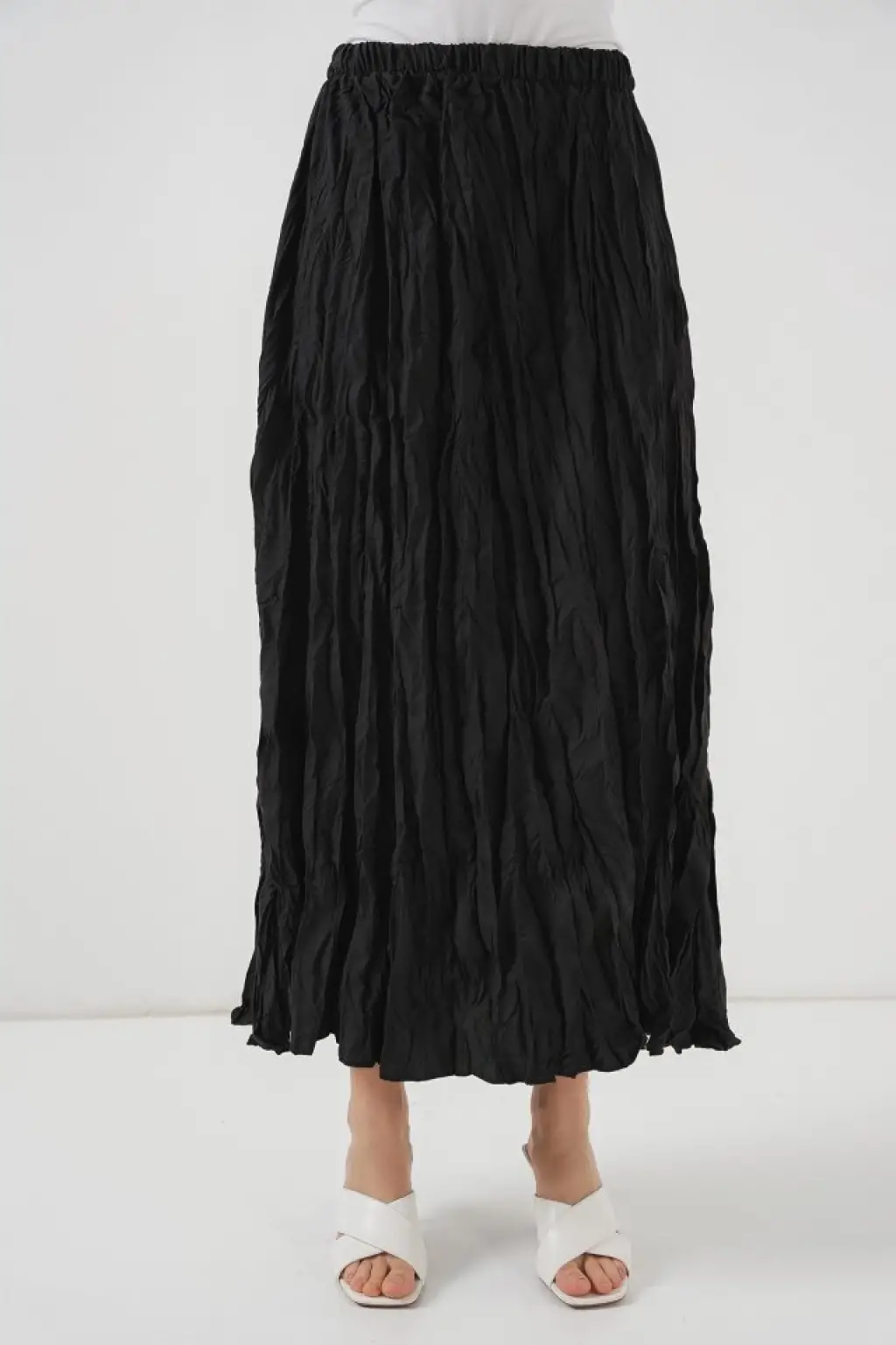 Uzun Kırışık Etek 8042 - Siyah