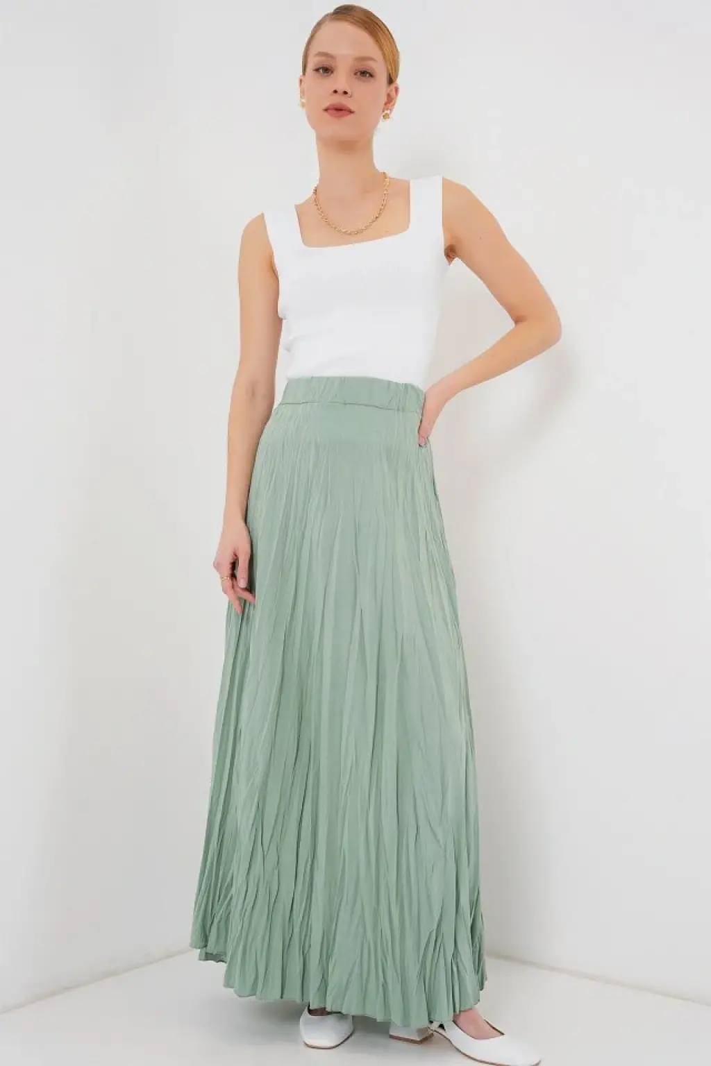 Kadın Uzun Kollu Yüksek Yakalı Yan şerit Detaylı Viskon Iki Iplik Bluz Ve Etek Ikili Takım
