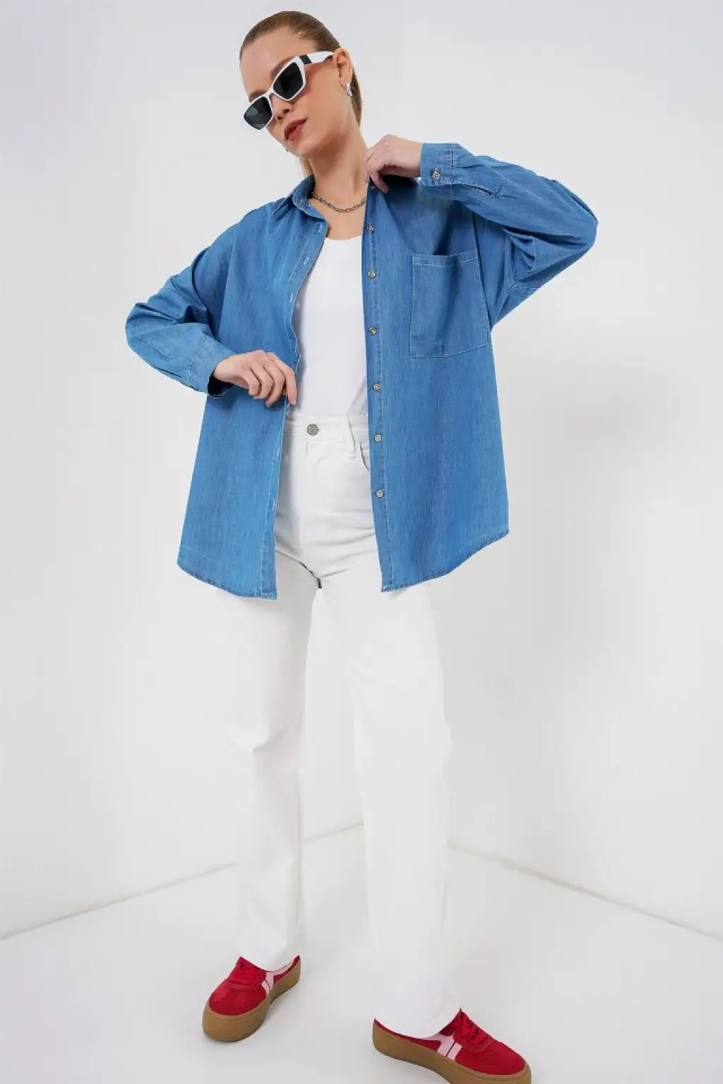 Oversize Kot Gömlek 20280 - Mavi