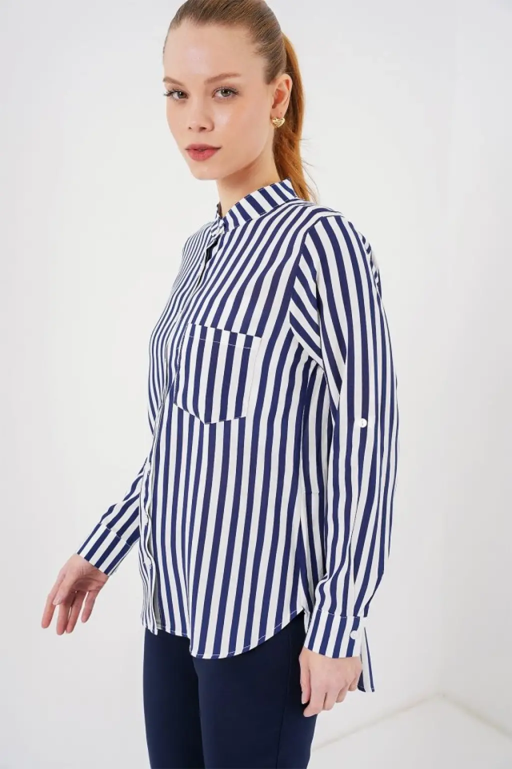 Uzun Kollu Çizgili Gömlek 20283 - Lacivert