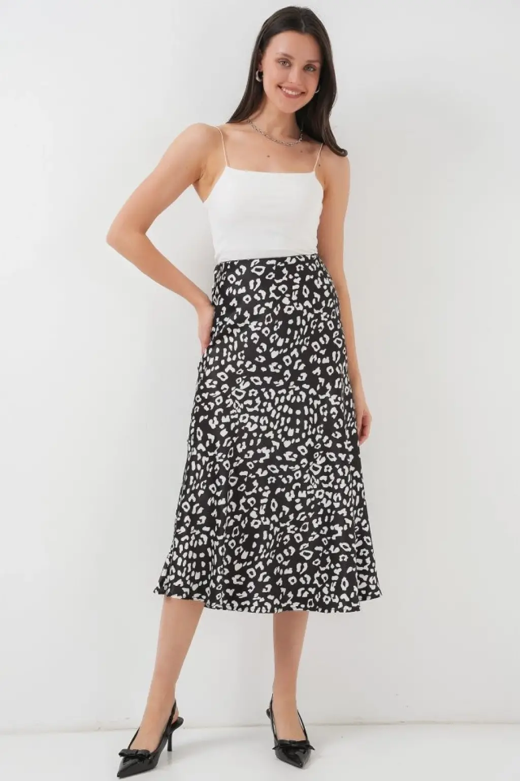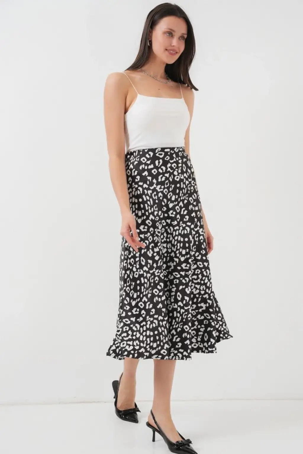 Siyah Beyaz Desenli Saten Etek 15806