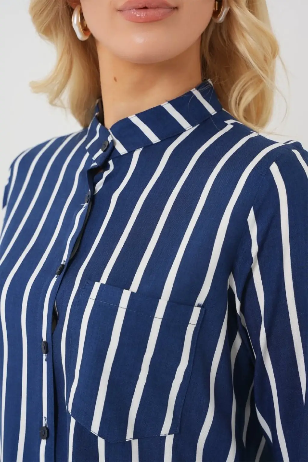 Çizgili Oversize Gömlek 20293 - Lacivert