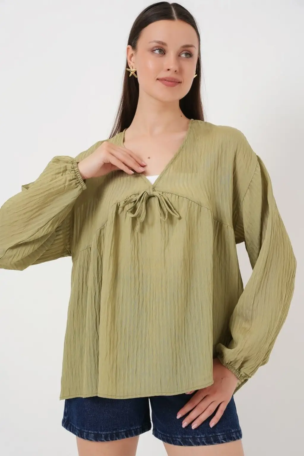 Önü Bağcıklı Uzun Kol Bluz 946 - Çağla