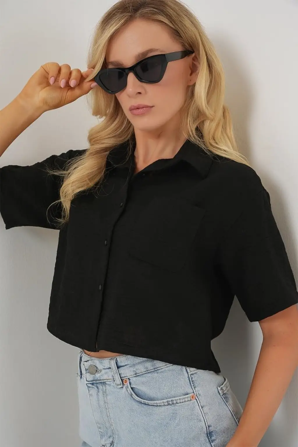 Kısa Kol Crop Gömlek 20341 - Siyah