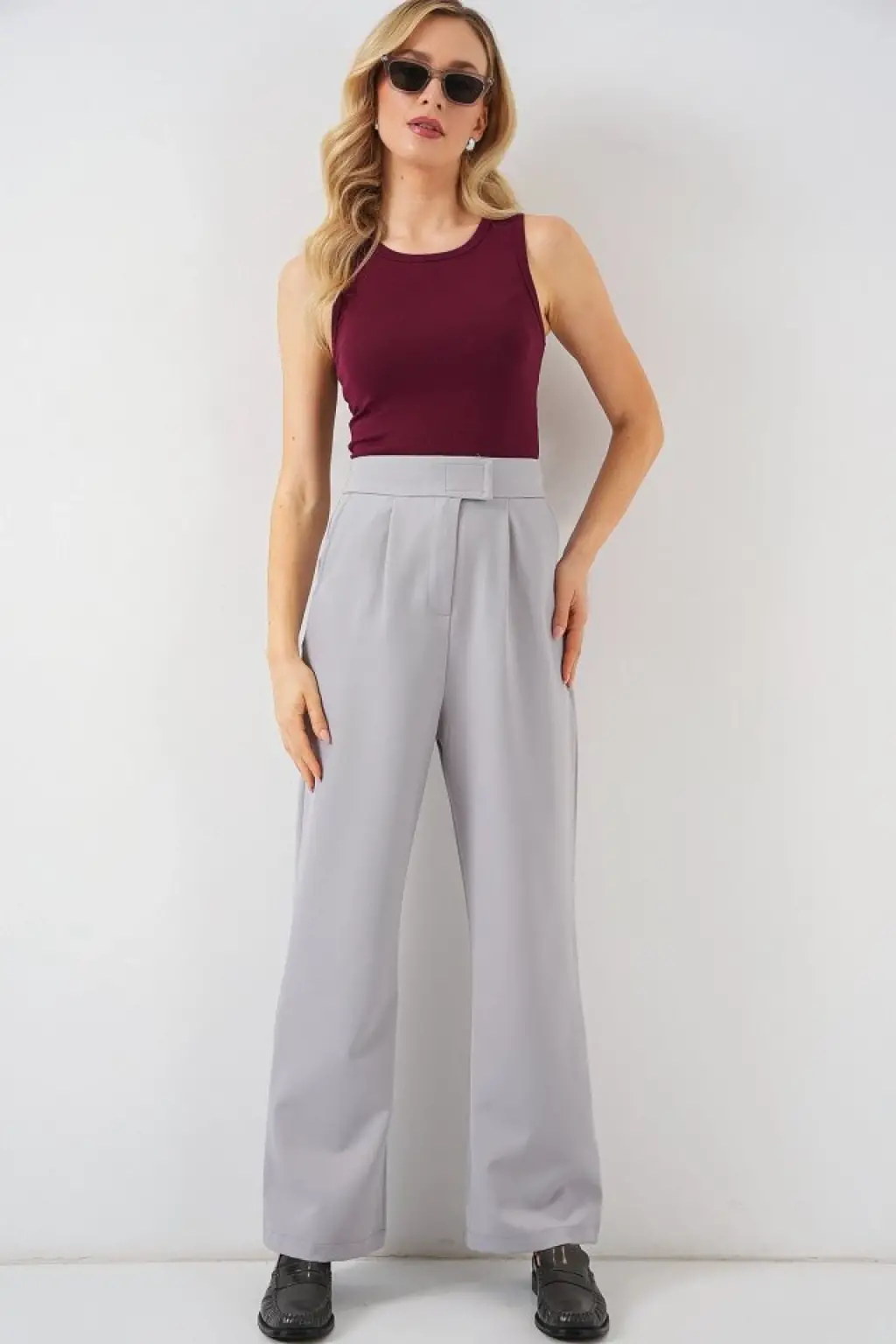 6612 Yüksek Bel Kumaş Pantolon - Gri