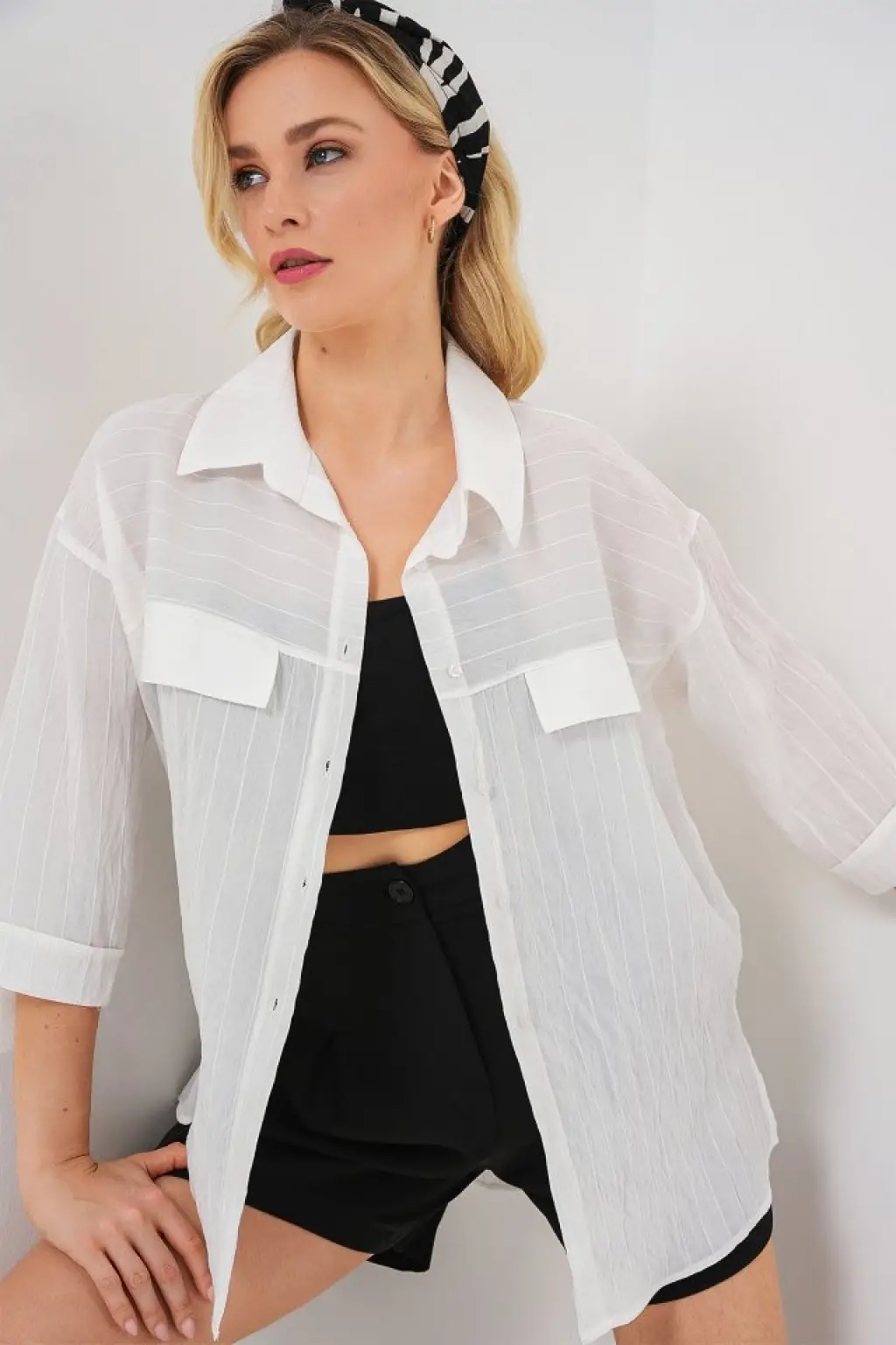 Cep Detaylı Kısa Kol Gömlek 20317 - Beyaz