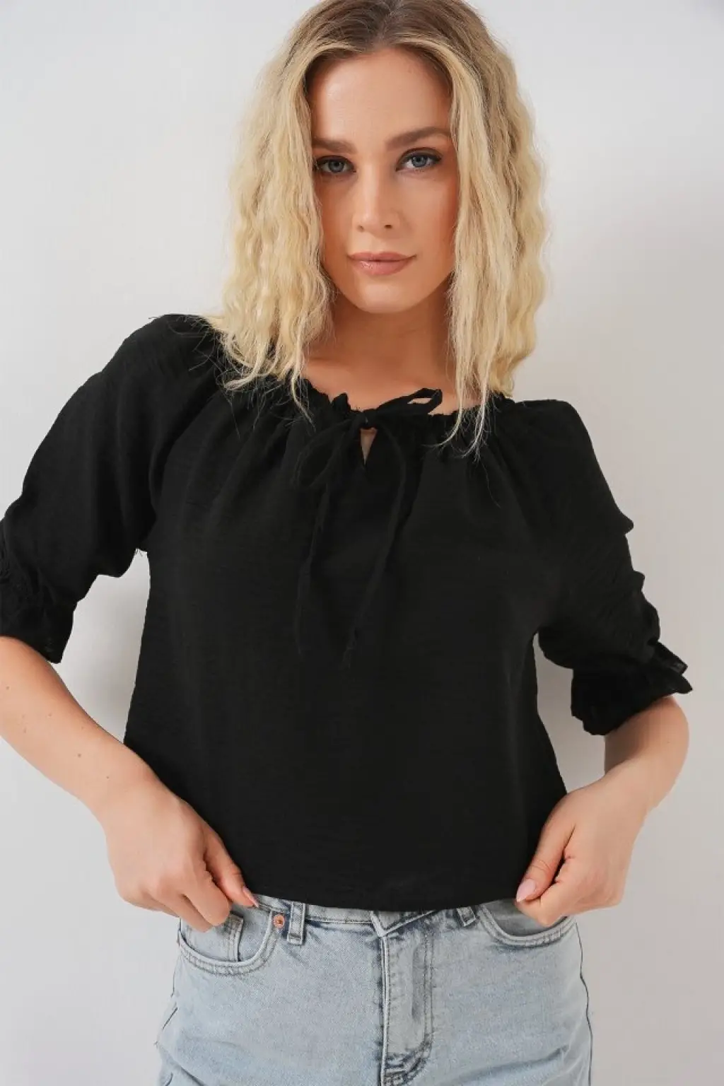 Yakası Fırfır Detaylı Bluz 959 - Siyah