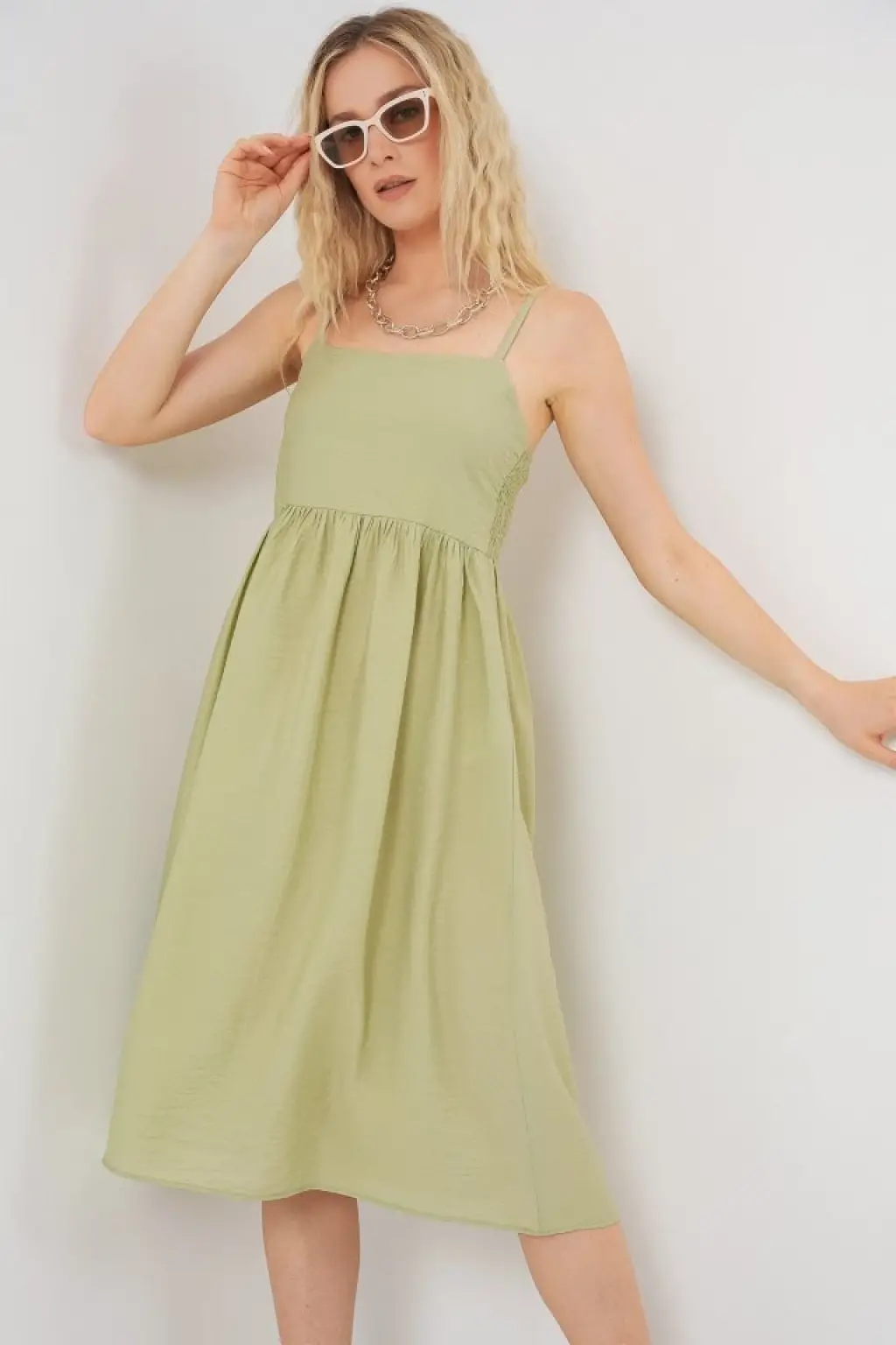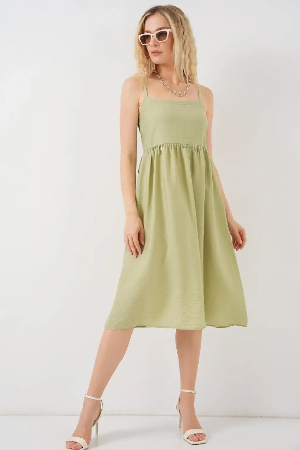 Askılı Ayrobin Elbise - E.Yeşil