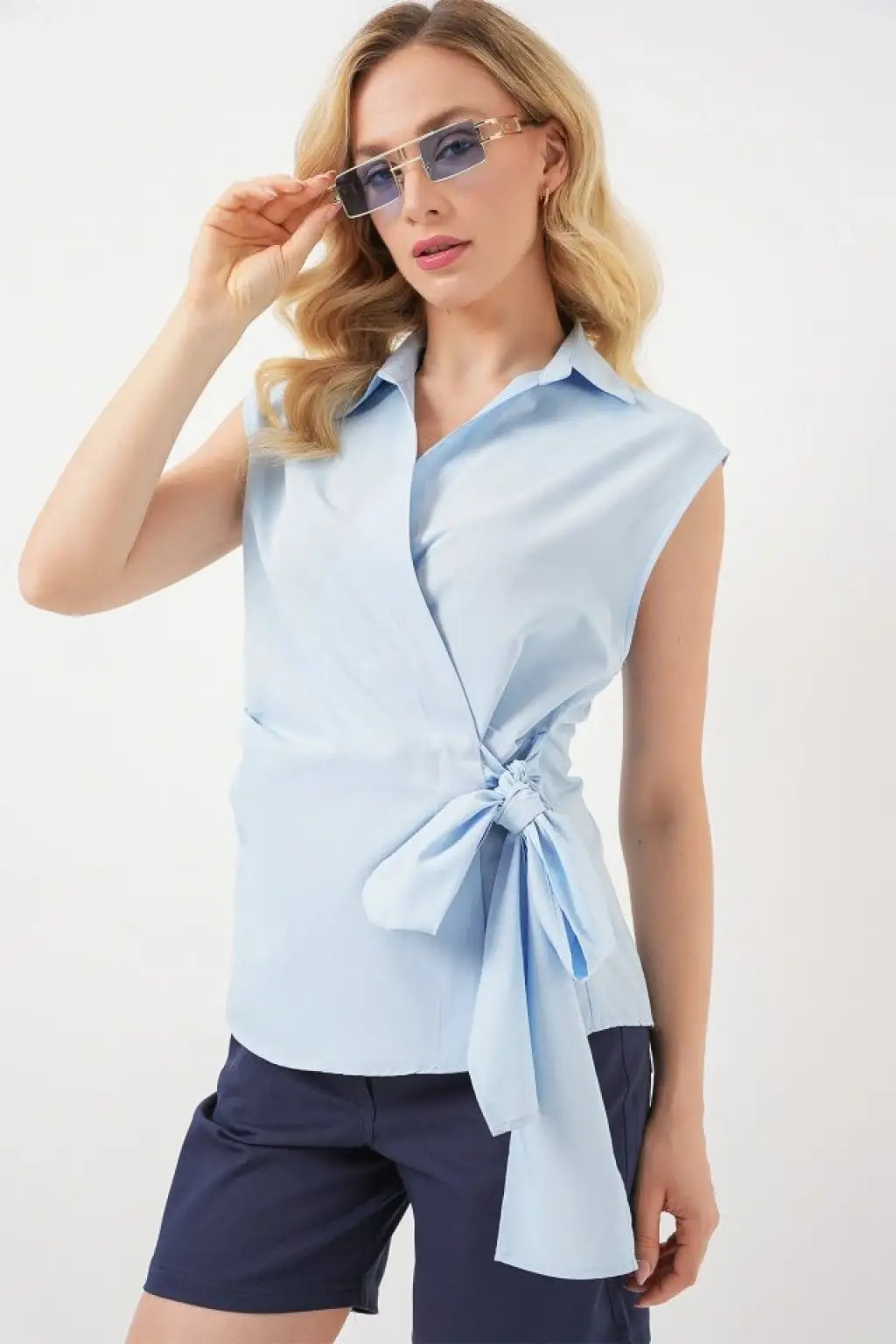 Sıfır Kol Anvelop Gömlek 20343 - Mavi