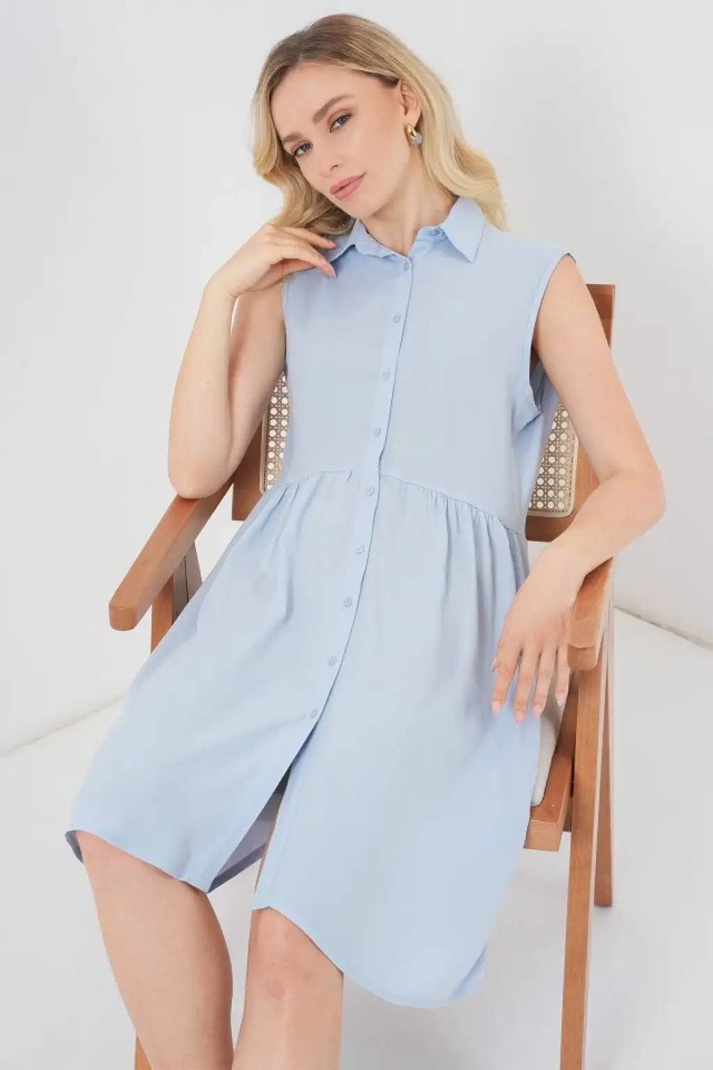 Sıfır Kol Midi Elbise 2563 - Mavi